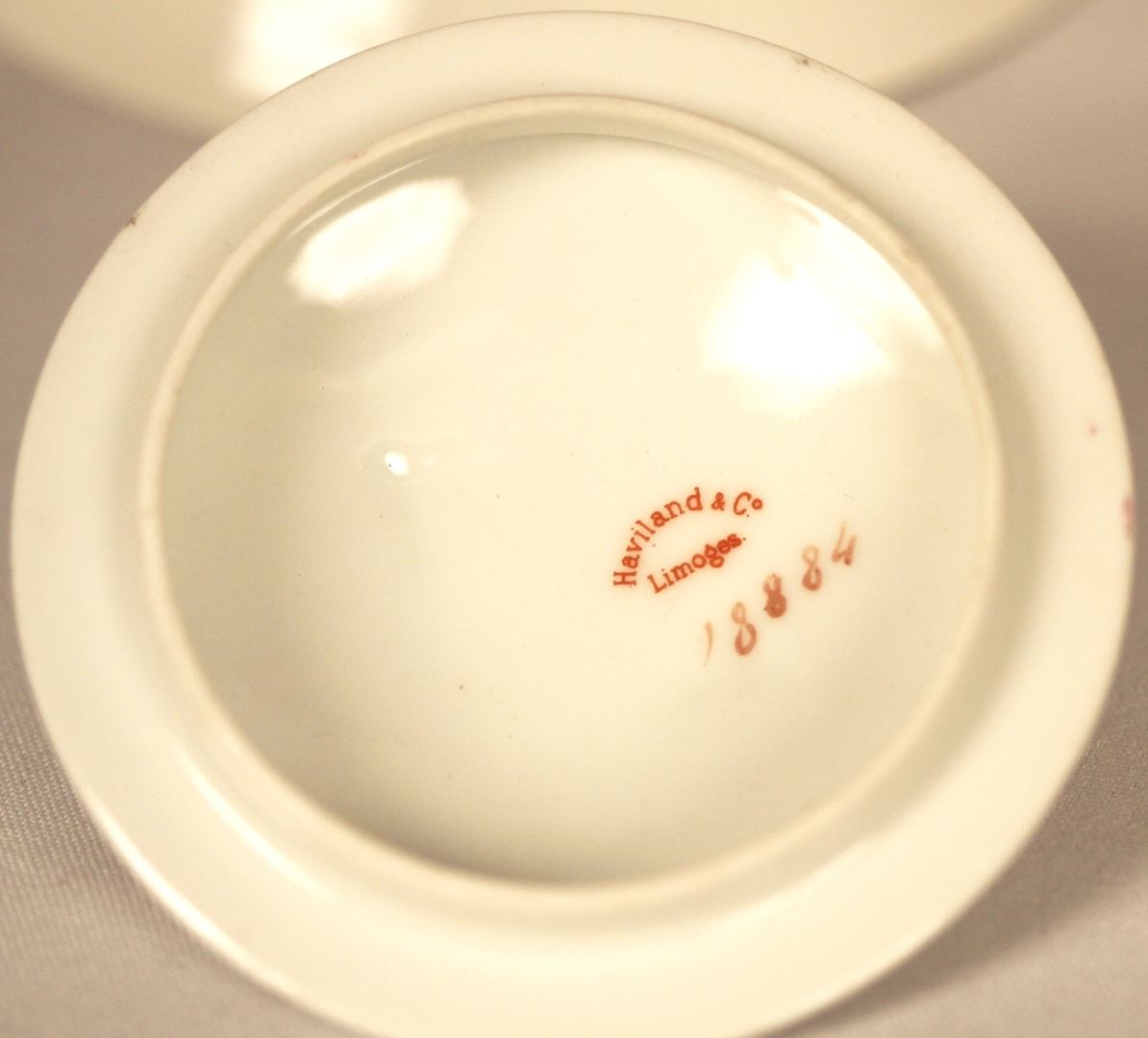 This is a vintage lot of 10 pieces of Limoges by Havilland & Co. It is white with pink flowers. Pattern is Schleiger 241C. This lot consists of 3 lunch plates (7.5"), 5 saucers (5.5"), 1 fruit/berry bowl (5"), 1 sugar lid (3.5"). No chips, cracks or repairs. Valued between $200-$250.00.