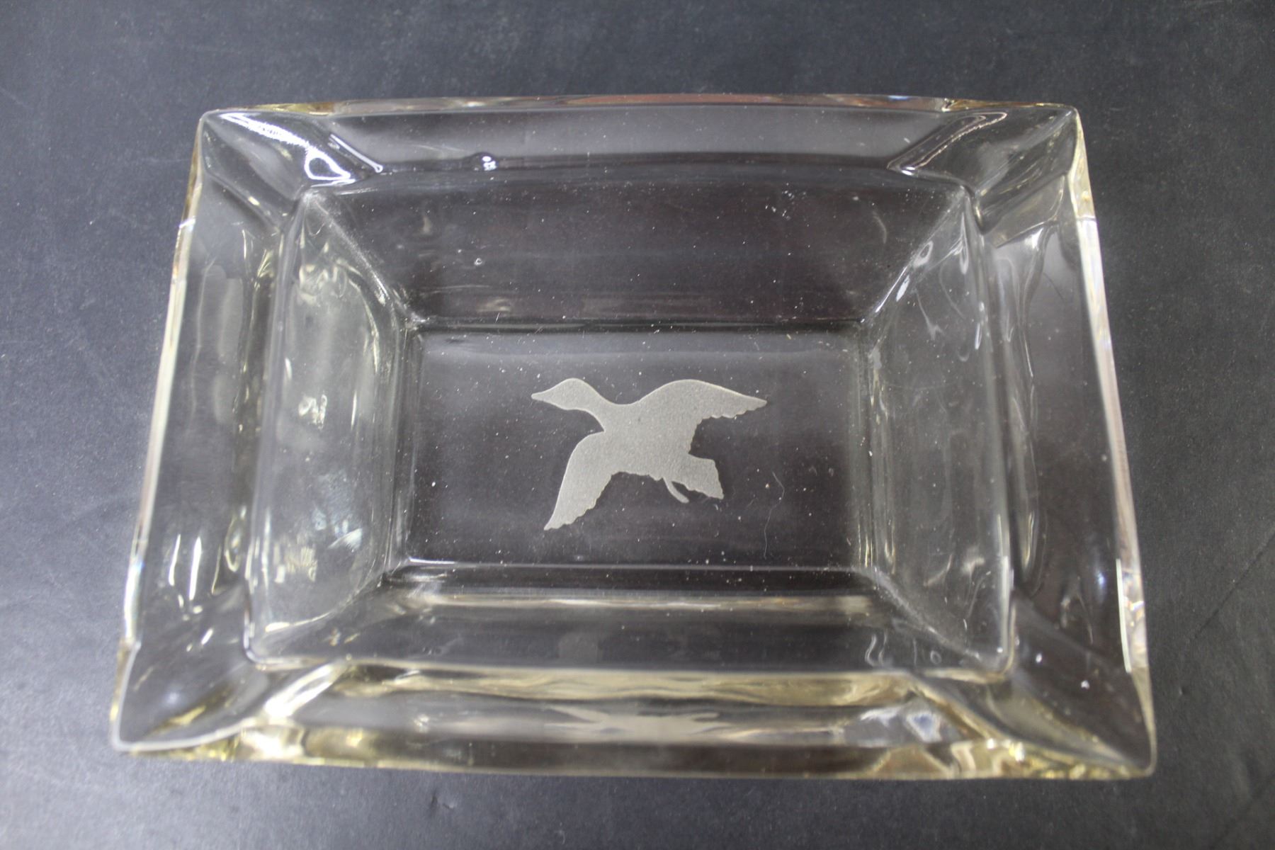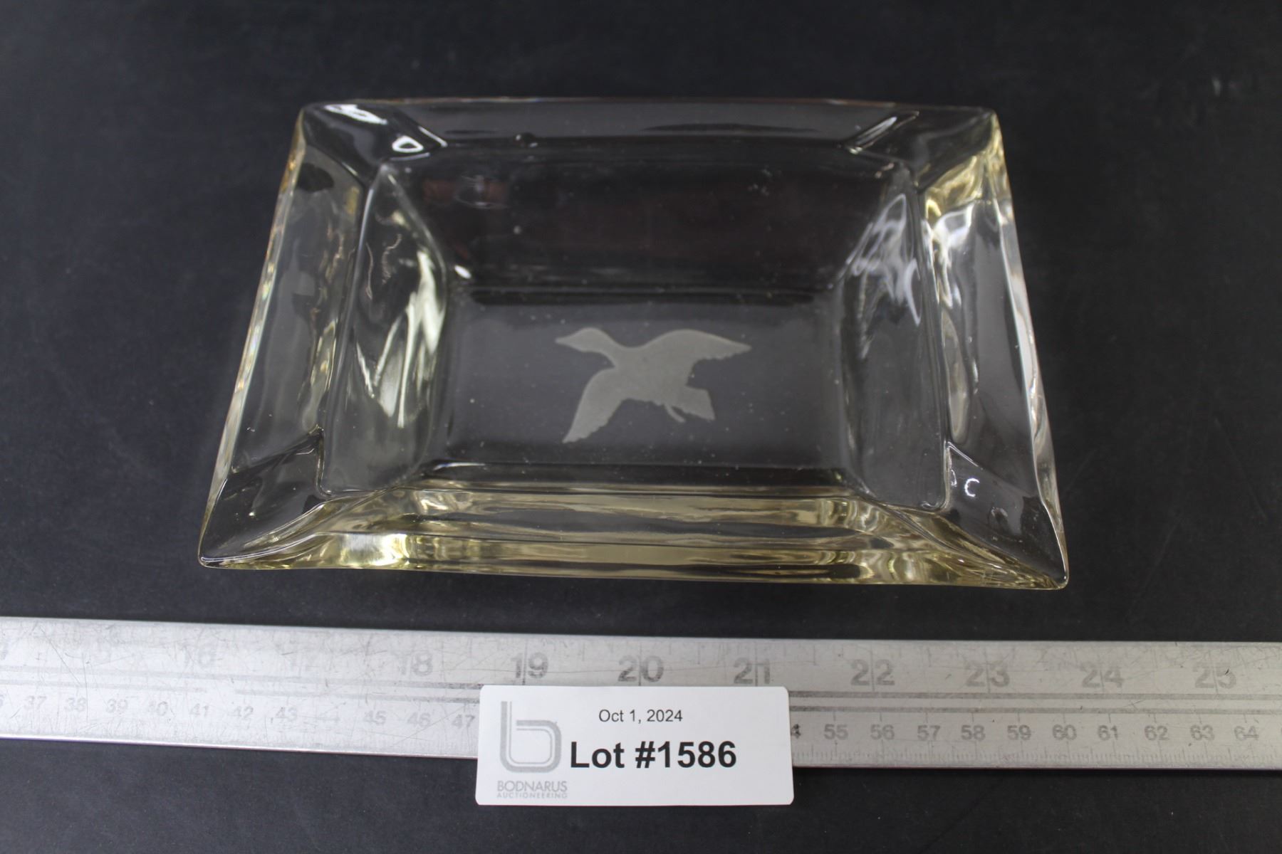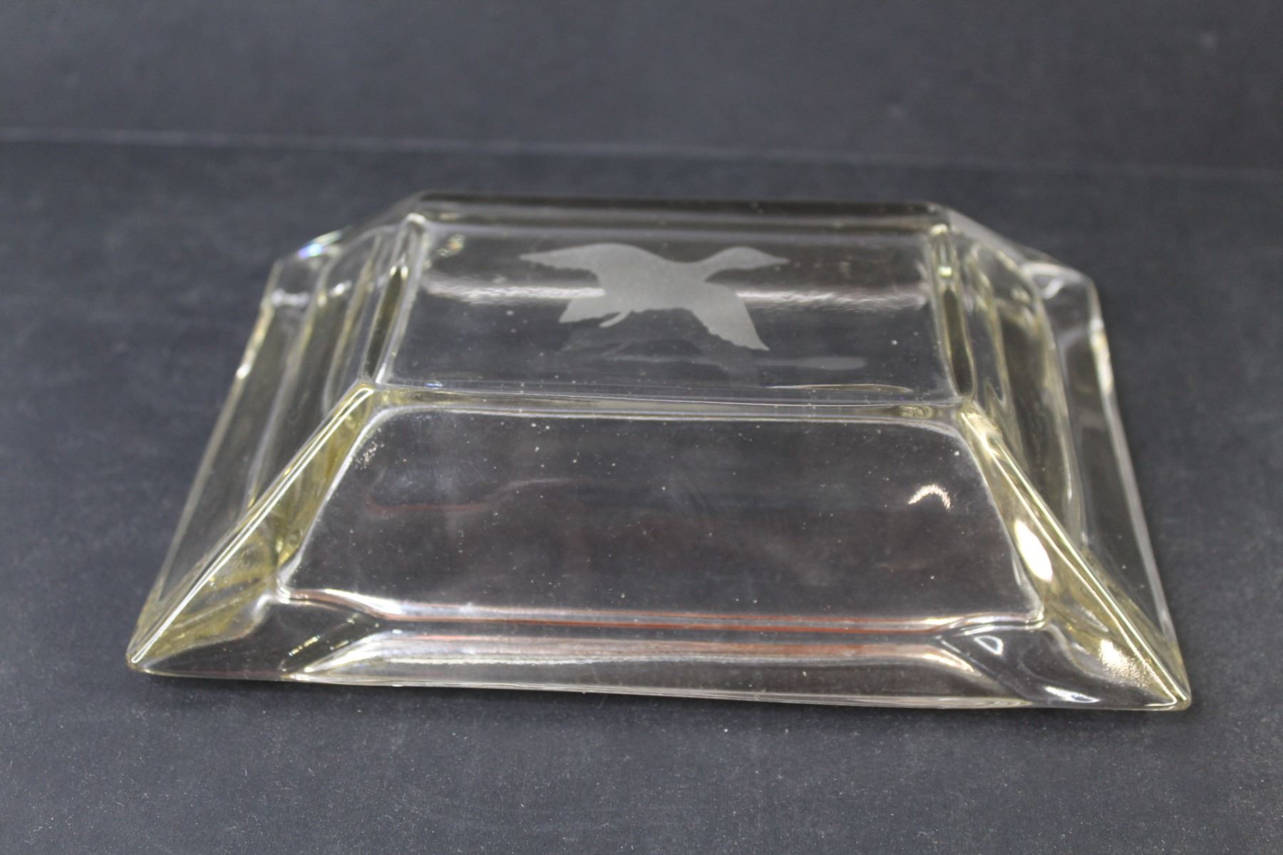 Vintage Heavy Clear Glass Ashtray (chip on inside edge - duck in flight etched on bottom)