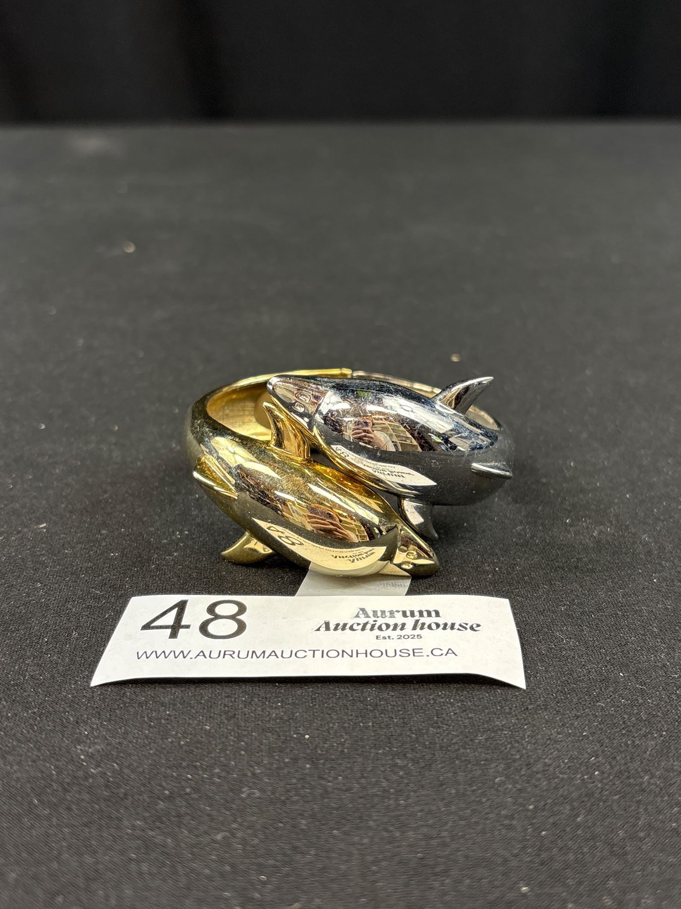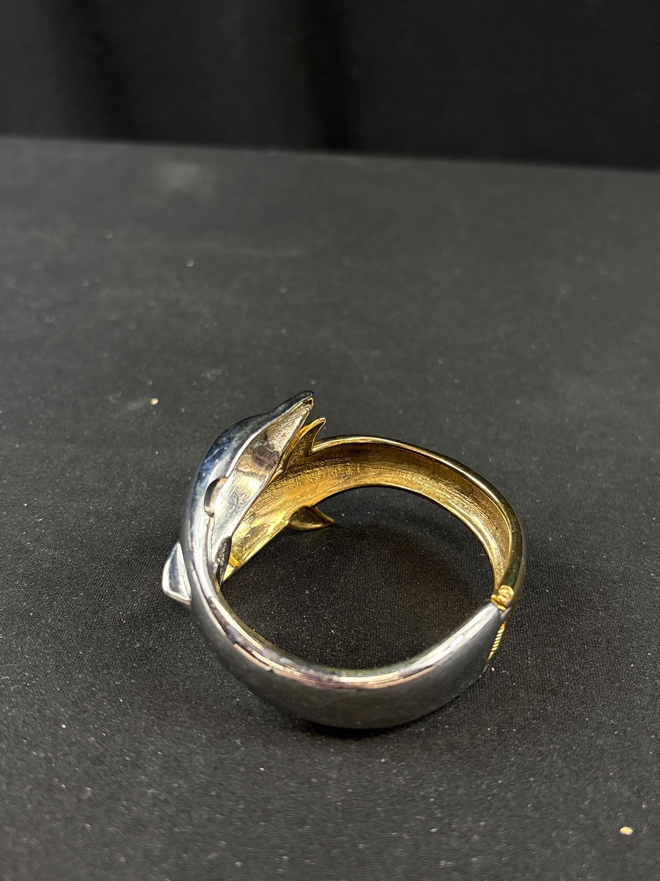 Vintage Hinged Gold and Silver Cuff Bangle Dolphins Very Nice
