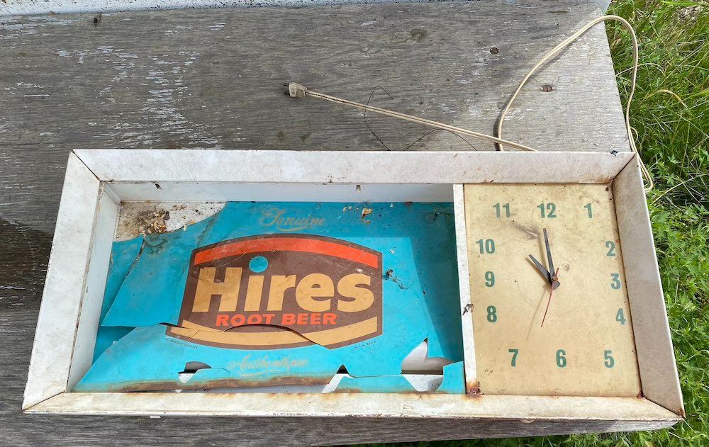 Vintage Hires Rootbeer Metal Soda Pop Clock & Sign - Clock is Running