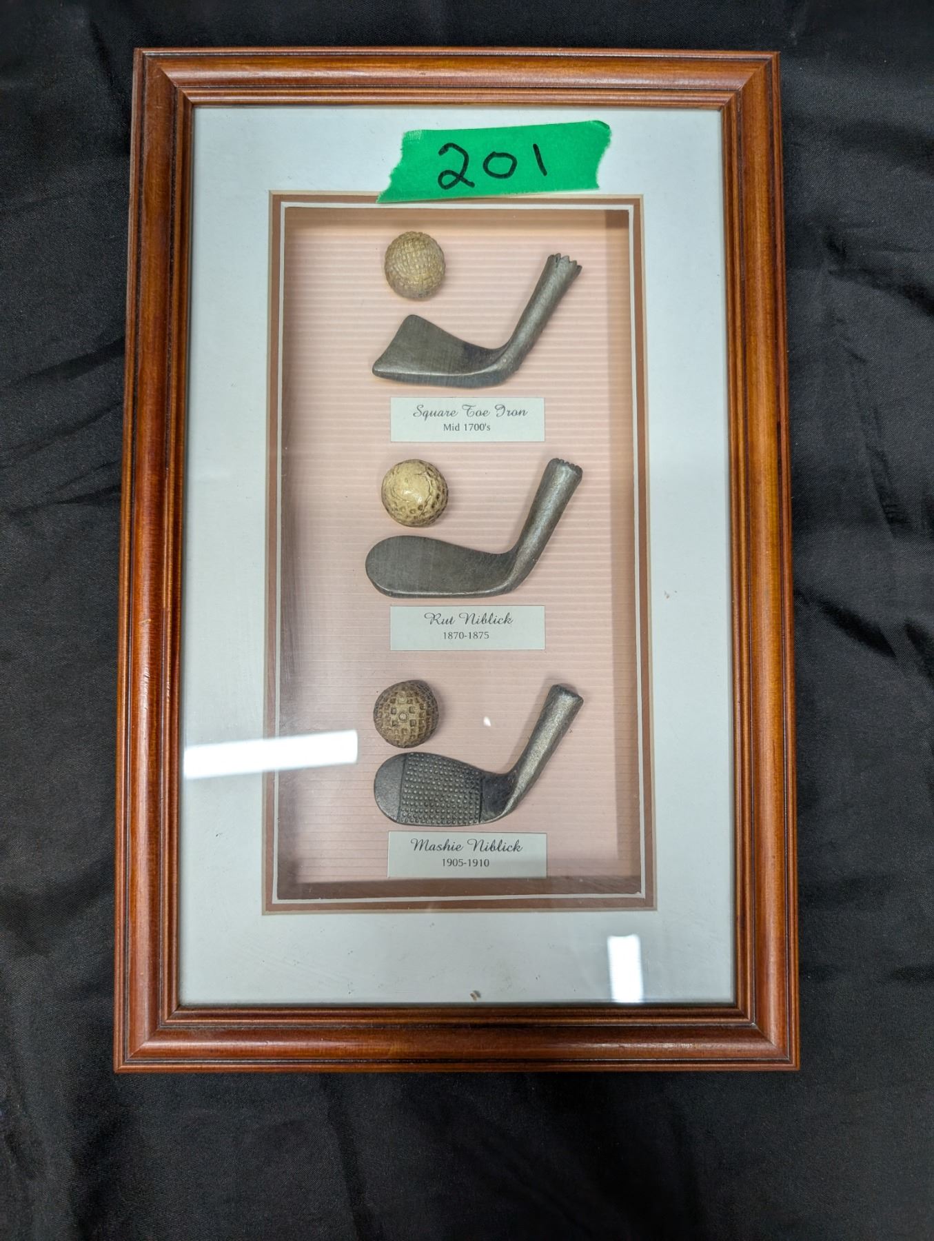 Vintage "History of Golf Evolution of Irons and Ball" Box Display 8.5"x13.5" Tall Framed w/Glass