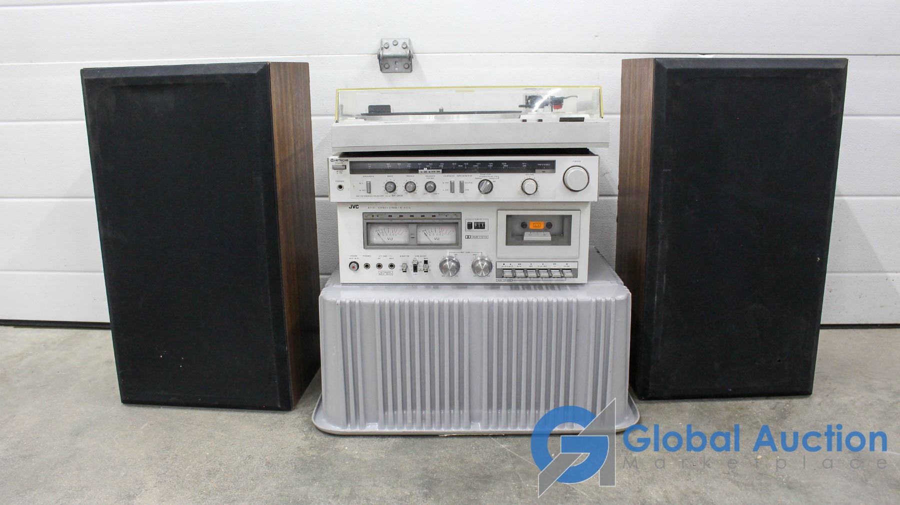 JVC Cassette Deck; HItachi Turntable; 2 Aurex Speakers (All working but turntable needs belt)
