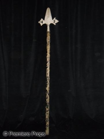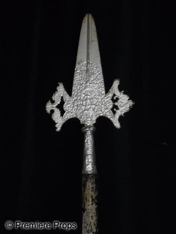 Vintage Hollywood Halberd - A wood halberd with a metal tip, painted to resemble dull steel. This weapon was acquired at a studio lot sale back in the 1980's. It is from unknown productions, but was very likely used in period films of the period. Overall size: 93" Blade: 18" x 9". This item is oversized and will require additional shipping costs. Please email for shipping rates prior to bidding.