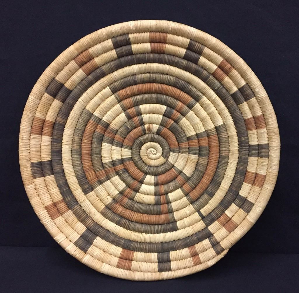 Maker: Unknown Hopi weaver. Approx. Age: Circa mid-century. Size: Measures 13.25” across. Condition: Fair. Additional Info: Vintage Hopi coiled design basket. Please look closely at the pictures - they are an important part of our description. Shipping: There will be a $5 handling / packaging fee for shipping this lot. The actual cost of postage will be added on top of that.