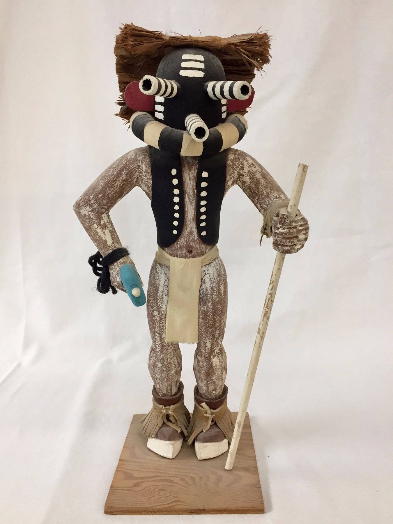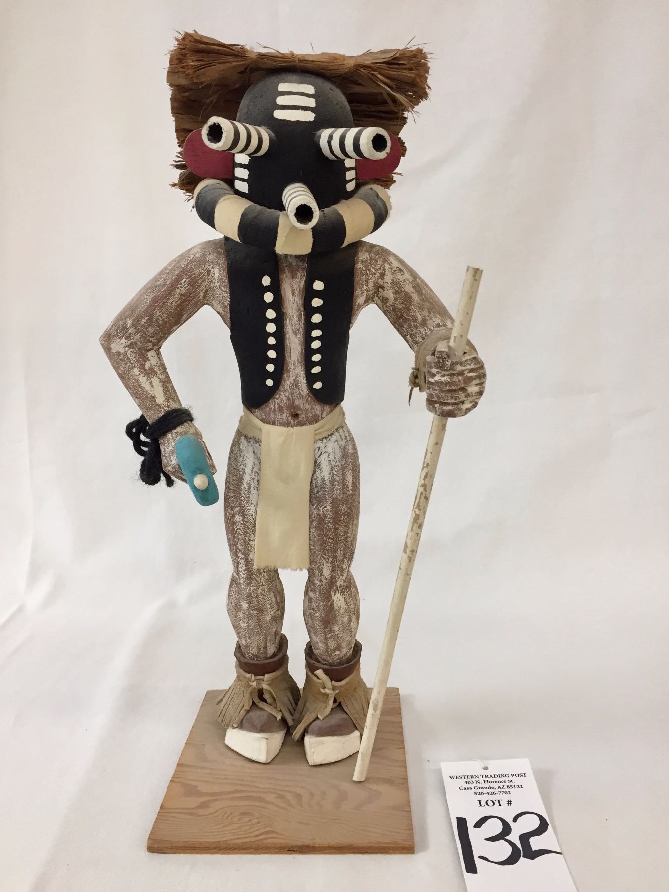 Description: A detailed and unique vintage Hopi Kachina from the early 1970s. Maker: Unknown Hopi Artist. Approx. Age: Circa Early 1970s. Size: 9”w x 15-1/2”tall. Condition: Pretty good for its age, normal wear expected. Please look closely at the pictures - they are an important part of our description. Shipping: There will be a $8 handling / packaging fee for shipping this lot. The actual cost of postage will be added on top of that.