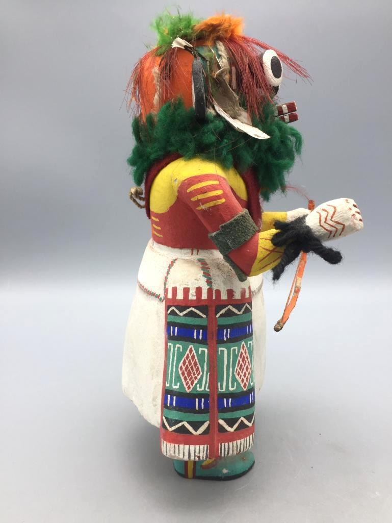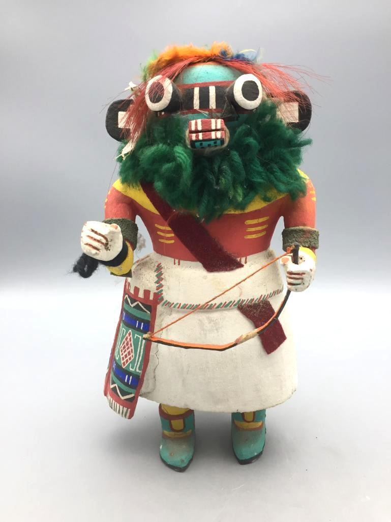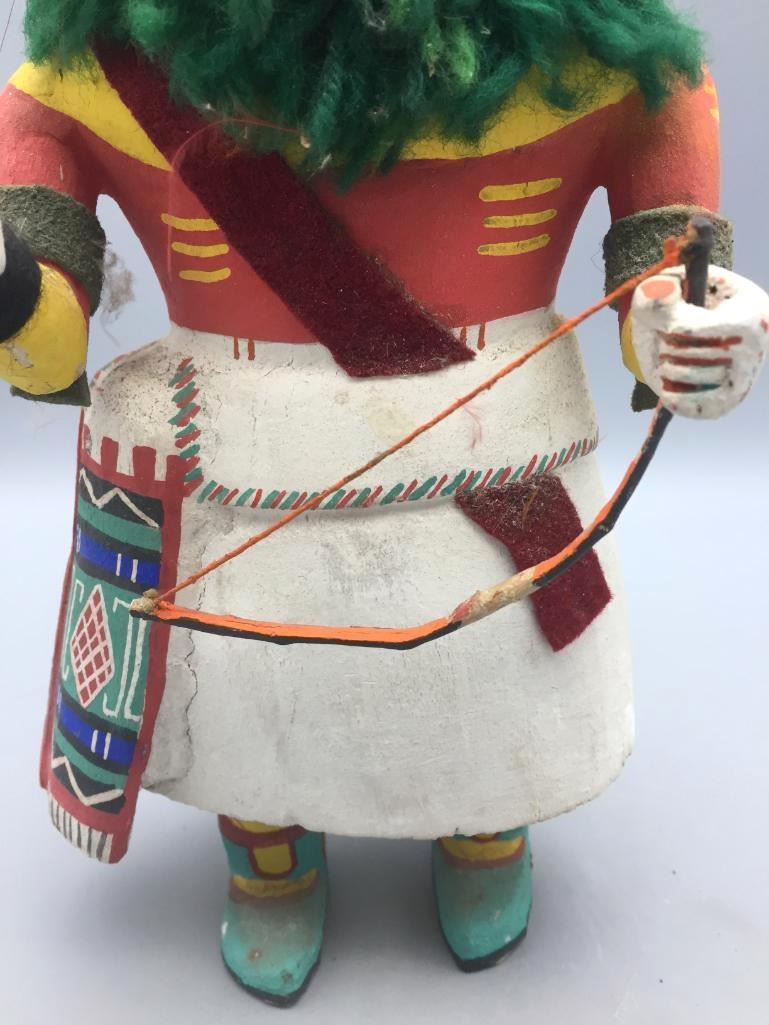 For your consideration we offer a highly detailed and hand painted, vintage Hopi Kachina. Maker: Unmarked. Approx. Age: Circa 1960. Size: 5-3/8 inches wide X 10 inches tall. Condition: Pretty good for its age, normal wear expected. Please look closely at the pictures - they are an important part of our description. Shipping: There will be a $10 handling / packaging fee for shipping this lot. The actual cost of postage will be added on top of that. BUY IT NOW: If you would like to buy this item now without waiting for the auction to end (this option is only available up to 48 hours before the auction starts to close), the “Buy it Now” price is the high estimate of this lot. If you would like to end the auction early and pay the high estimate (plus applicable fees), please contact us by phone or email and reference this lot number.
