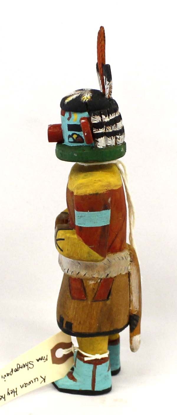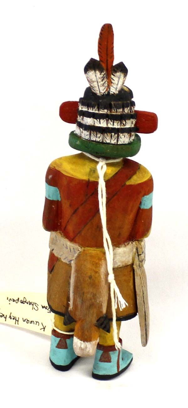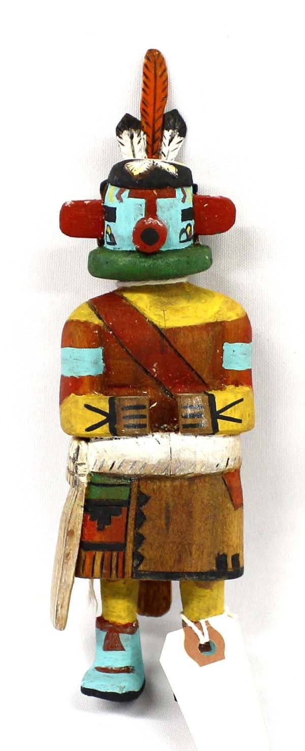 Vintage Native American Hopi Kuwan Heyheya Kachina, beautifully hand carved and painted, measures 3''W x 9''H, from Shungopavi, Arizona 2nd Mesa
