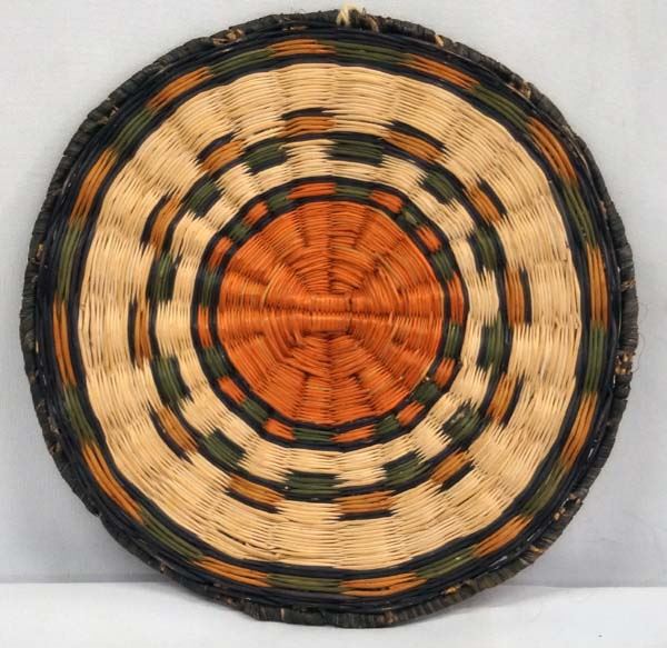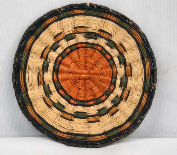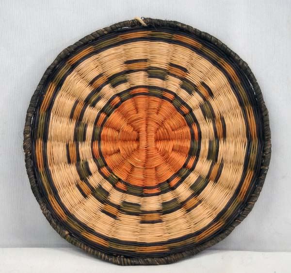 Vintage Native American Hopi Tri-Colored Dance Basket, measures 8.25''D, beautiful earthtones
