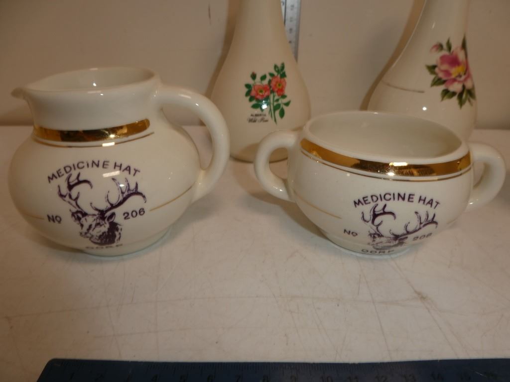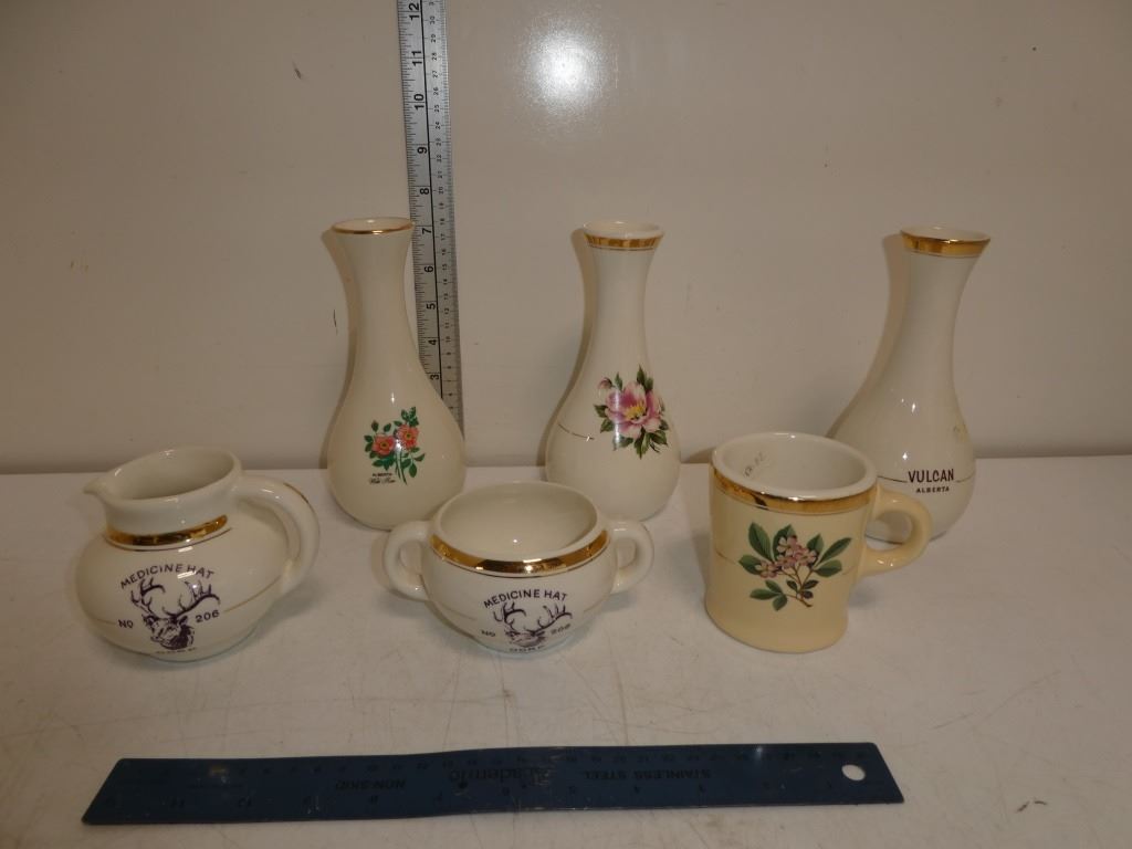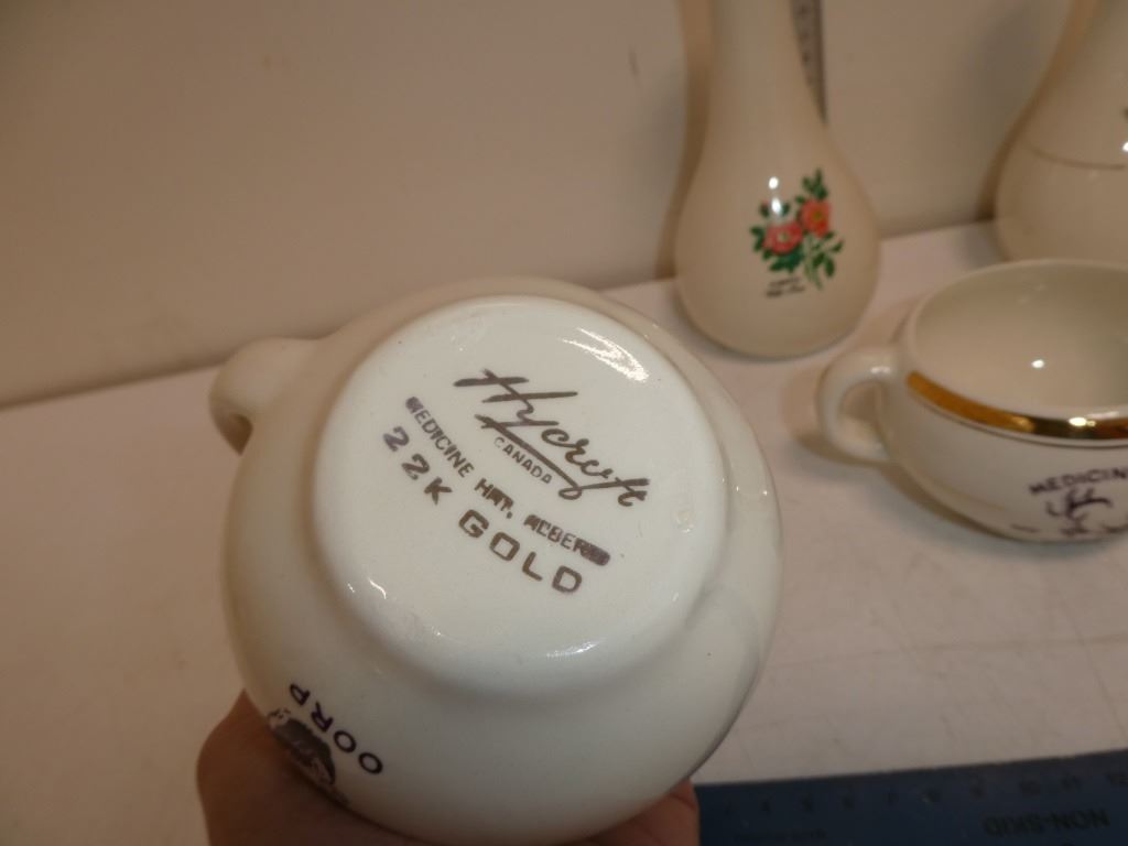 Vintage Hycroft 3 Vases, Cream and Sugar and Mug