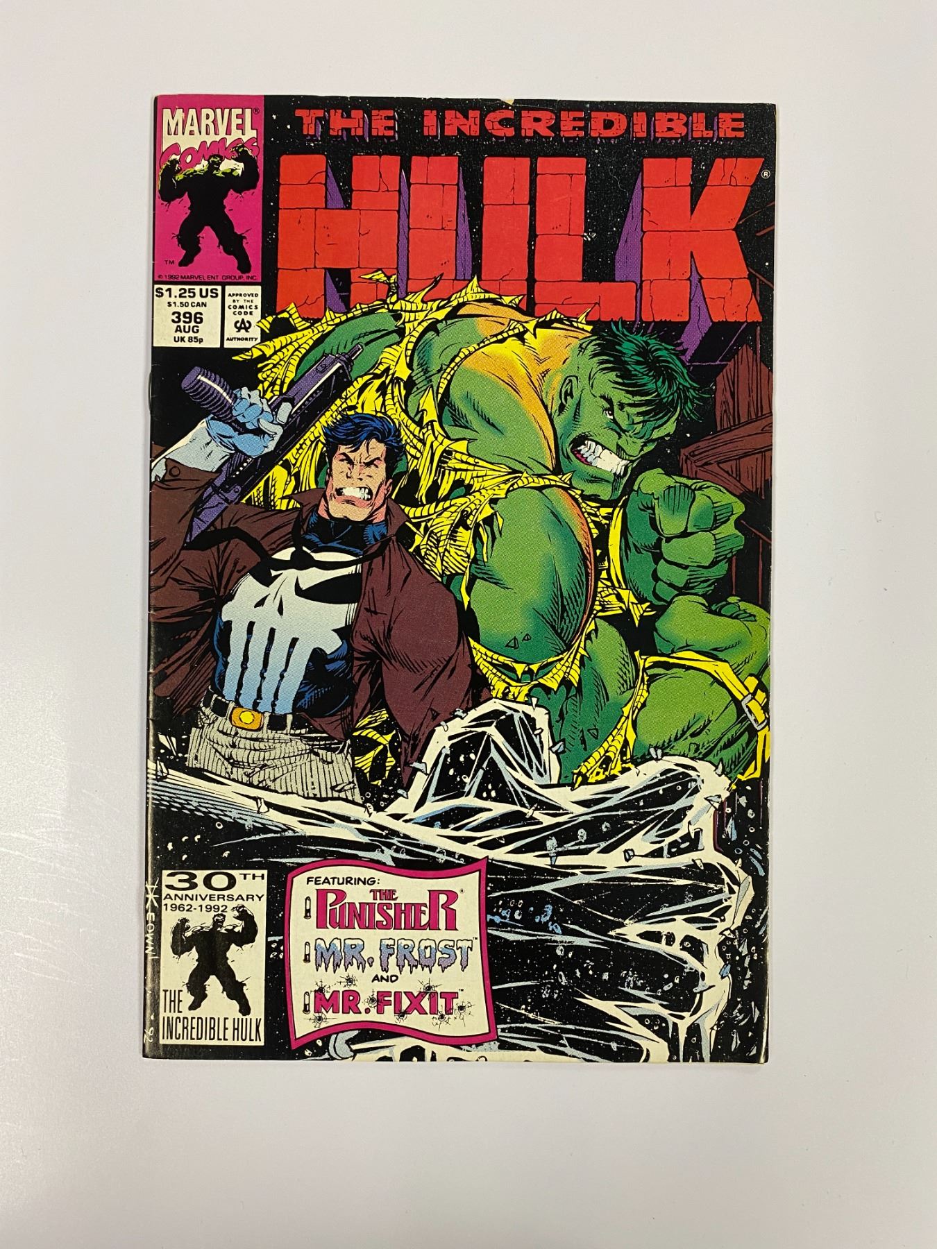 The Incredible Hulk #396, Featuring Punisher Mr Frost Mr Fixit, $1.25, Aug 1992, Bagged and boarded
