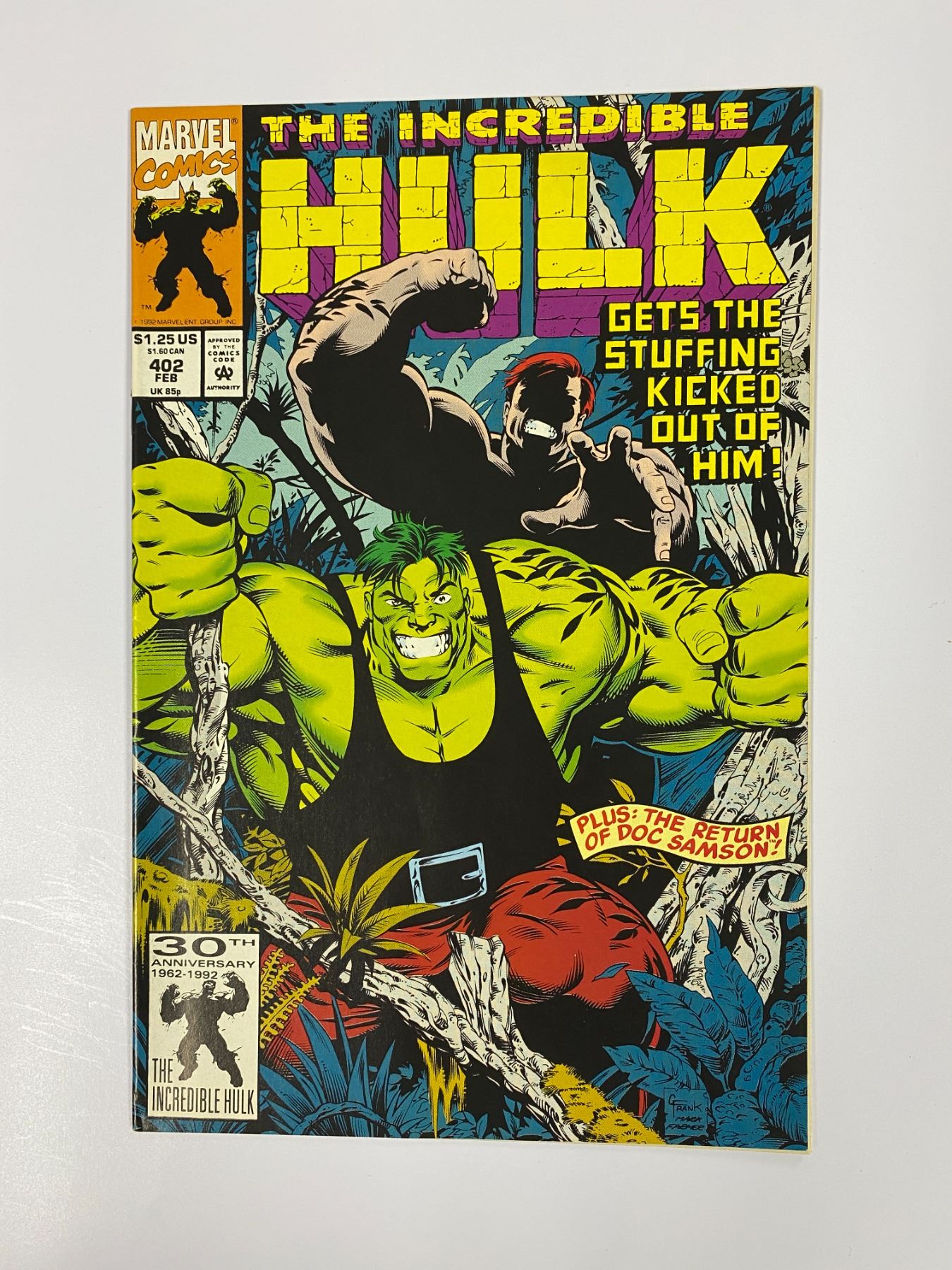 The Incredible Hulk #402 gets the stuffing kicked out of him! Plus the return of doc samson, $1.25, Feb 1992, Bagged and boarded