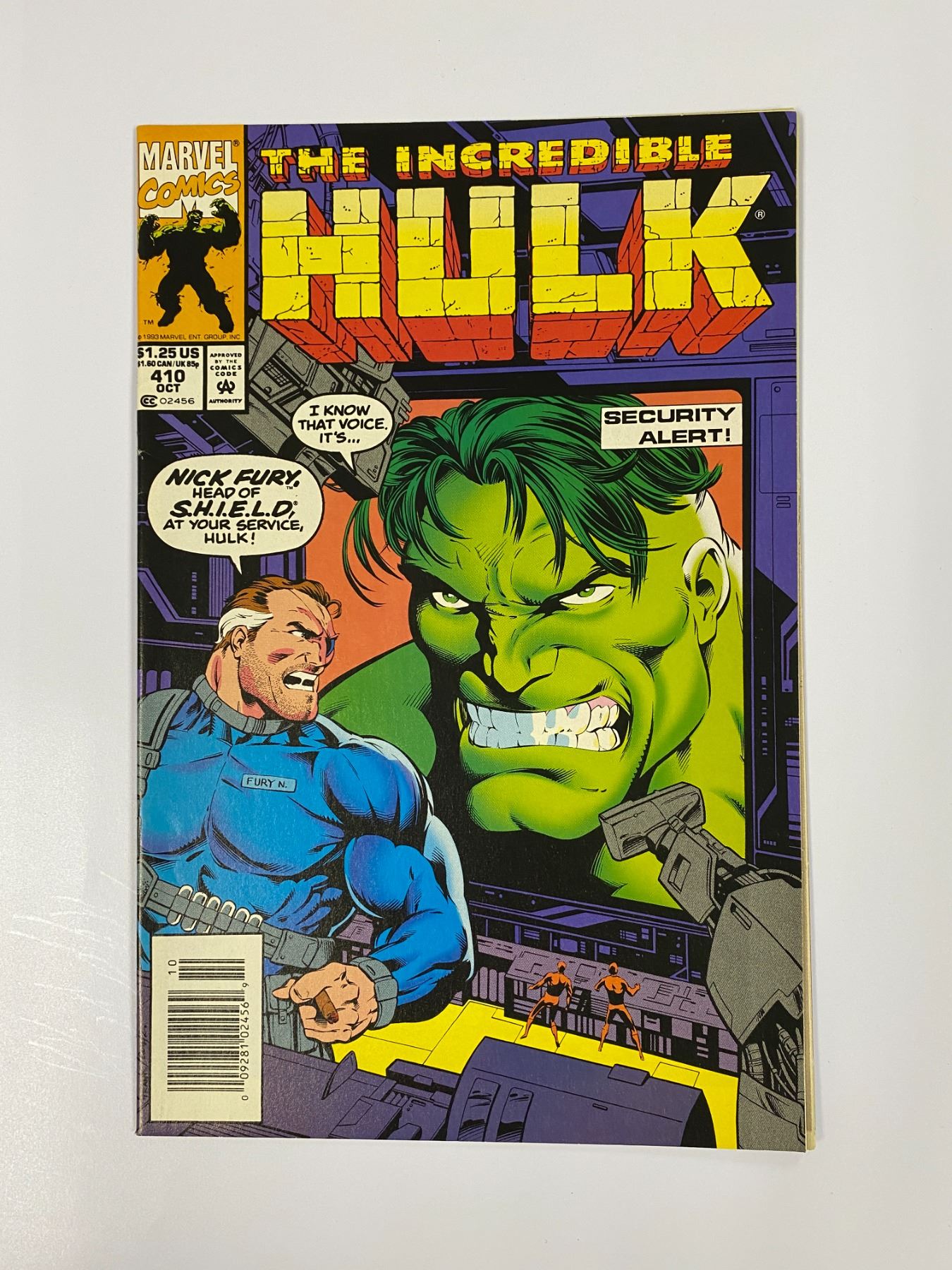 The Incredible Hulk #410 Security Alert! I know that voice it's…Nick Fury Head of SHIELD At Your Service Hulk!, $1.25, Oct 1993, Bagged and boarded