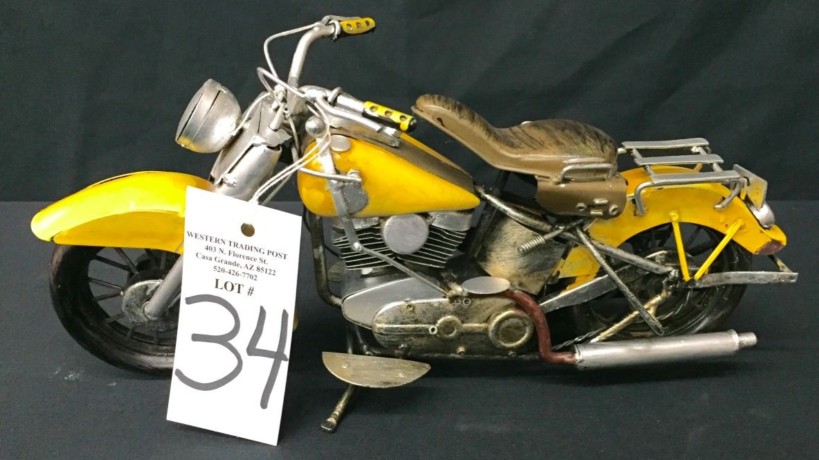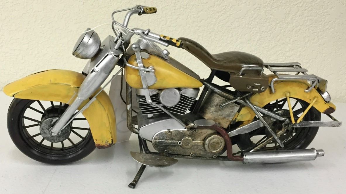This hand made, metal Indian motor cycle model measures approximately 14” long by 7.5” tall. Probably made circa the 1970s or 1980s. Good condition. Please look closely at the pics as they are an important part of our description. Shipping: There will be a $5 handling / packaging fee for shipping this lot. The actual cost of postage will be added on top of that.