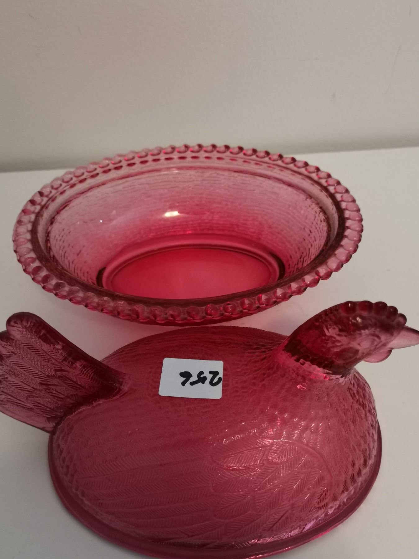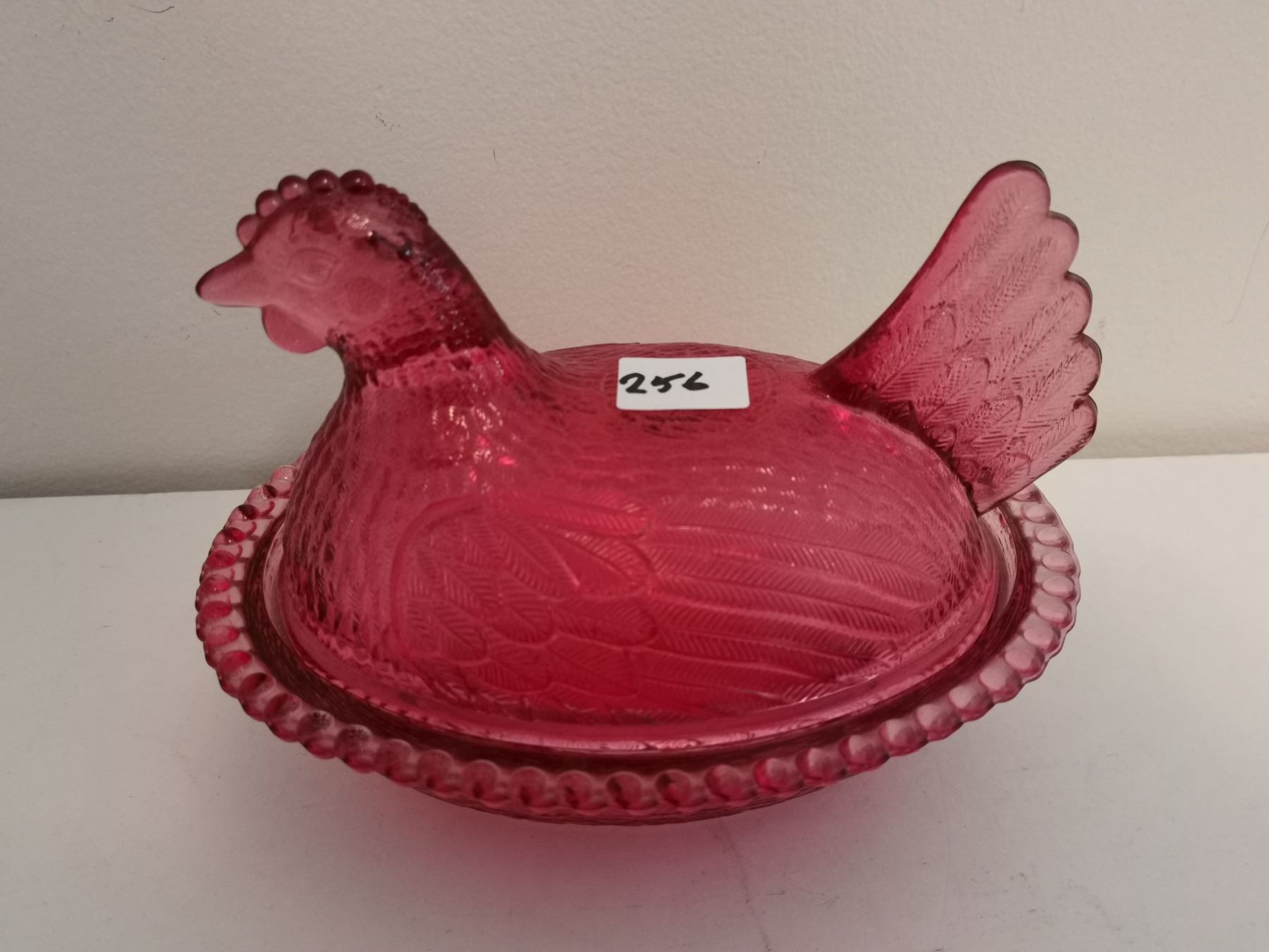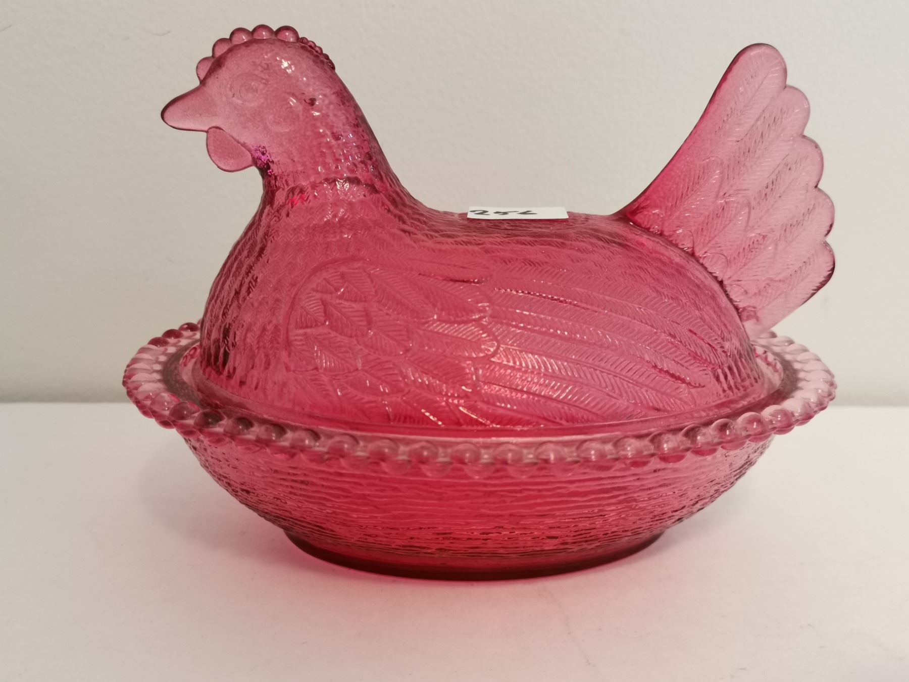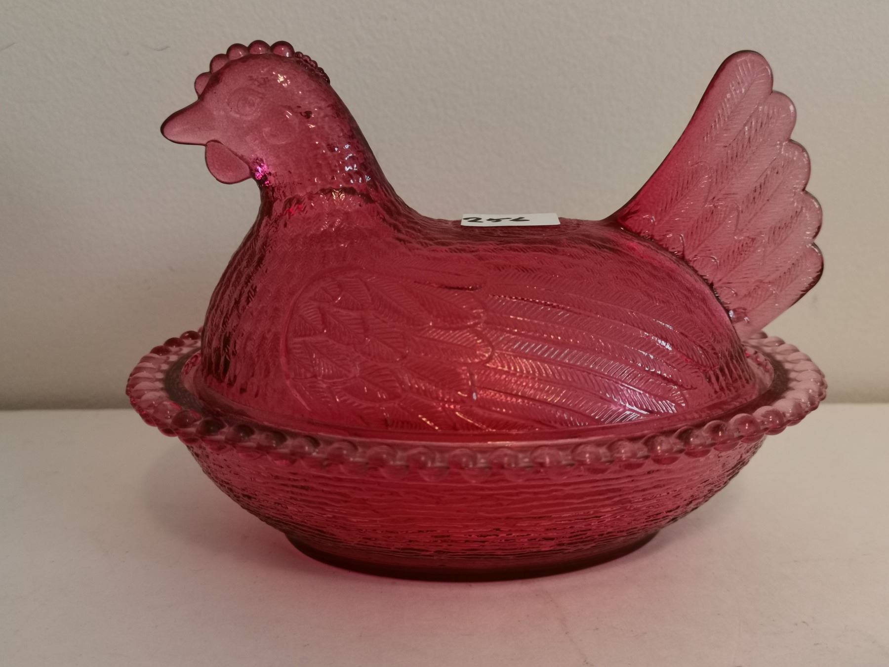 Vintage Indiana cranberry glass, Hen on the nest - 7x5 1/2"
