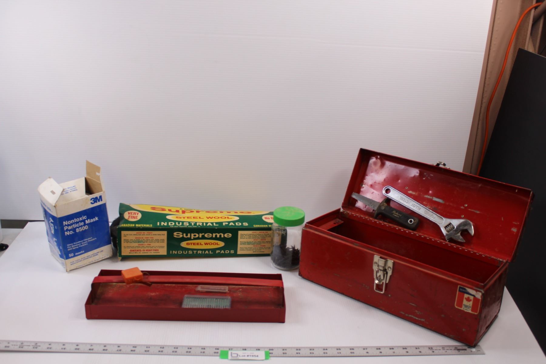 Vintage Industrial Brillo Steel Wool Pads, Mastercraft Tool Box w/Contents, Dust Masks