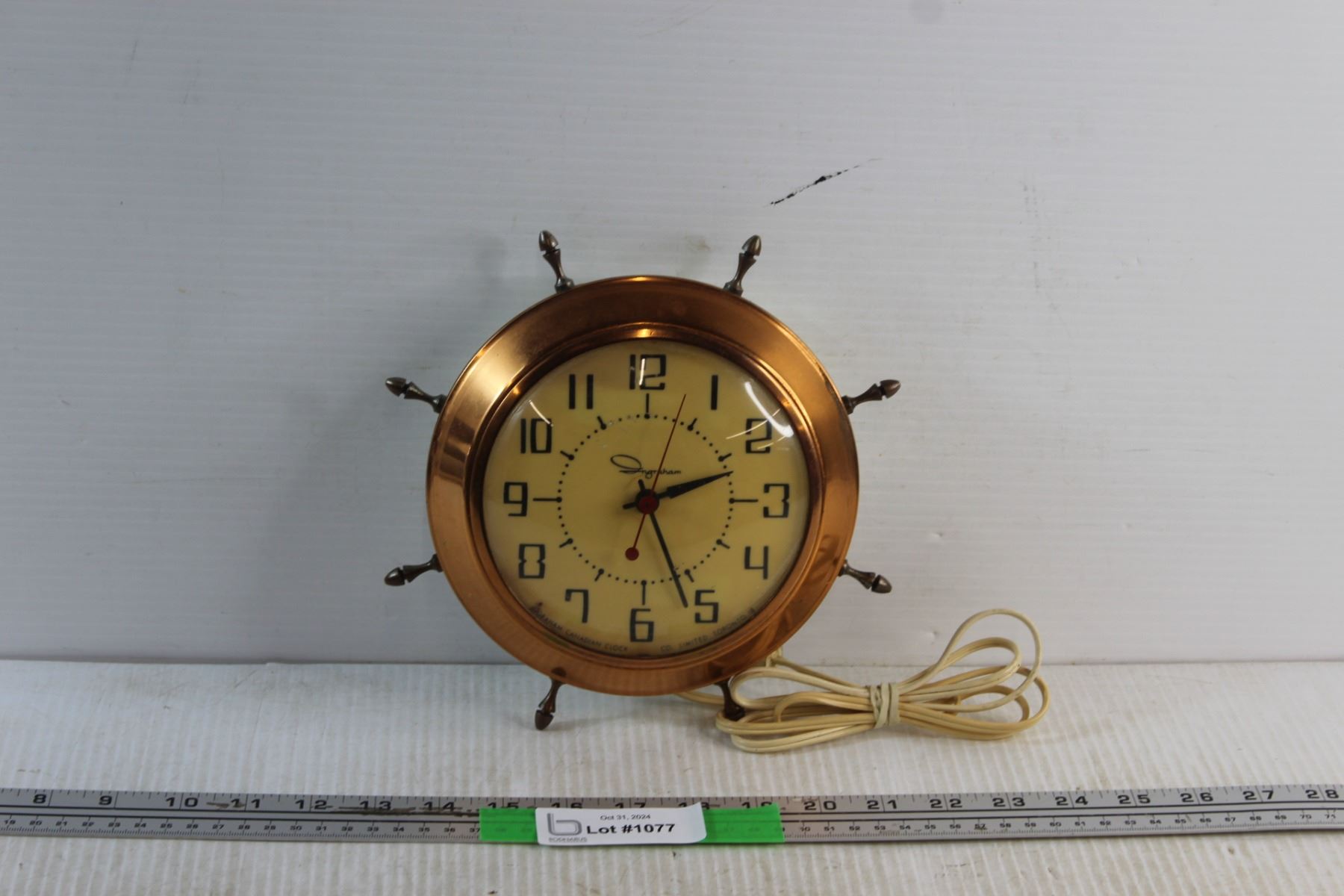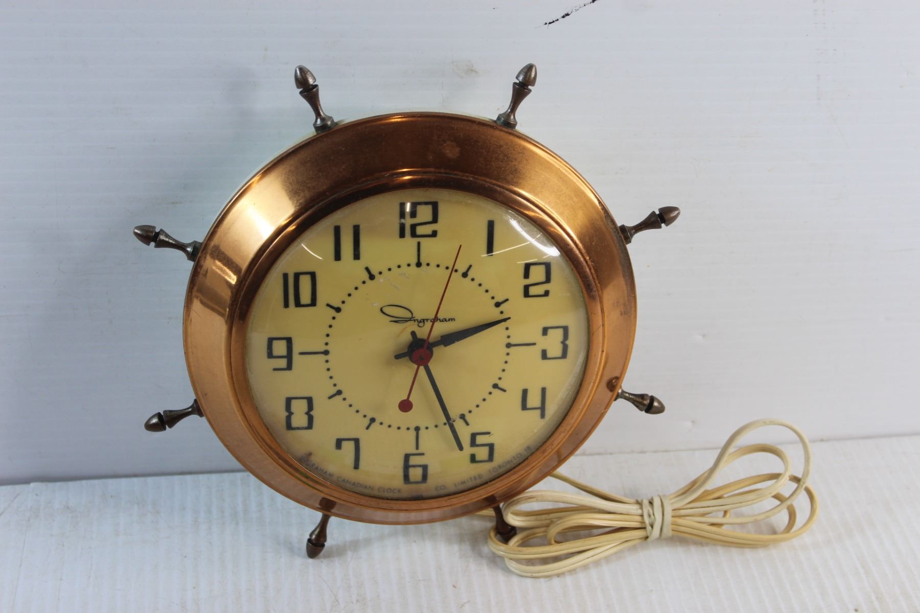 Vintage Ingraham Copper Electric Wall Clock -Tested