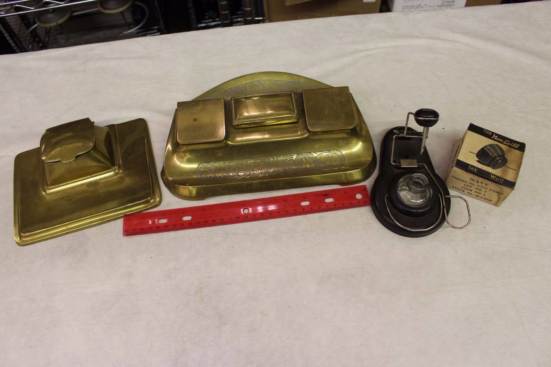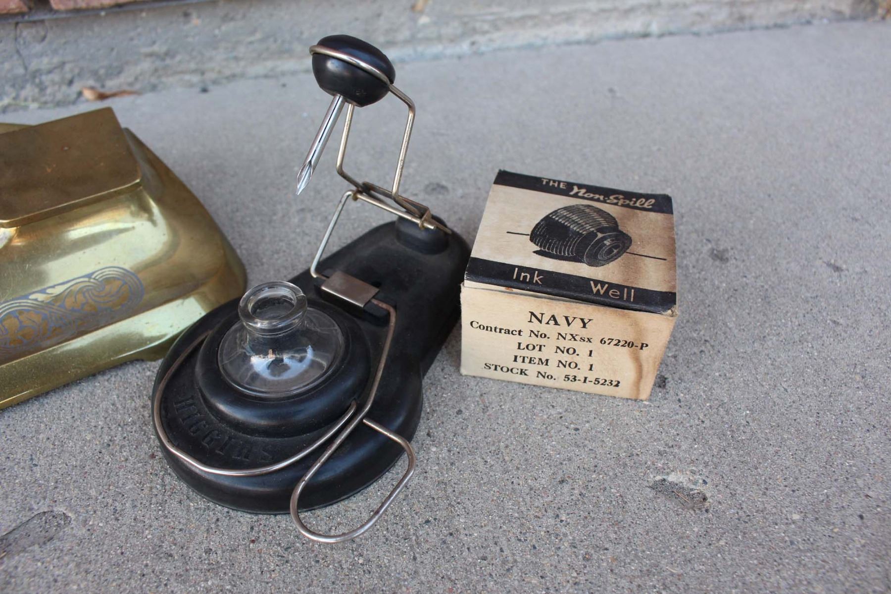 Vintage Inkwells (4)(Higgins, Non-Spill, Bronze)