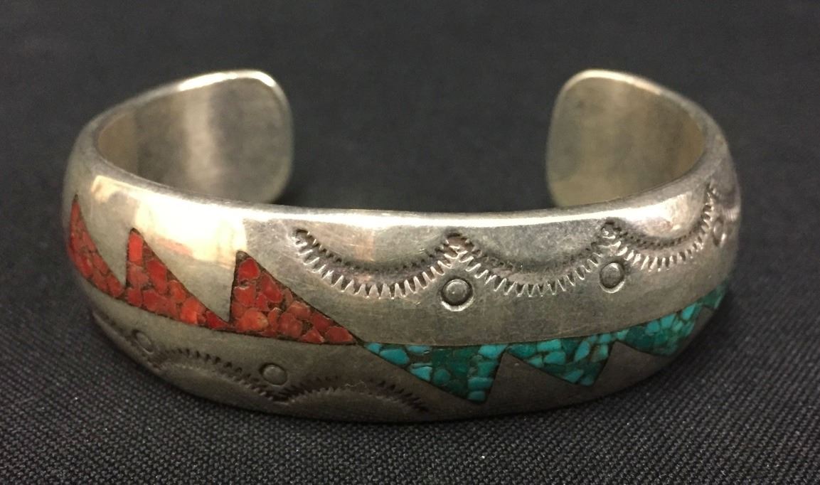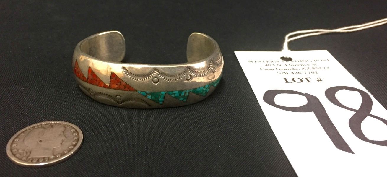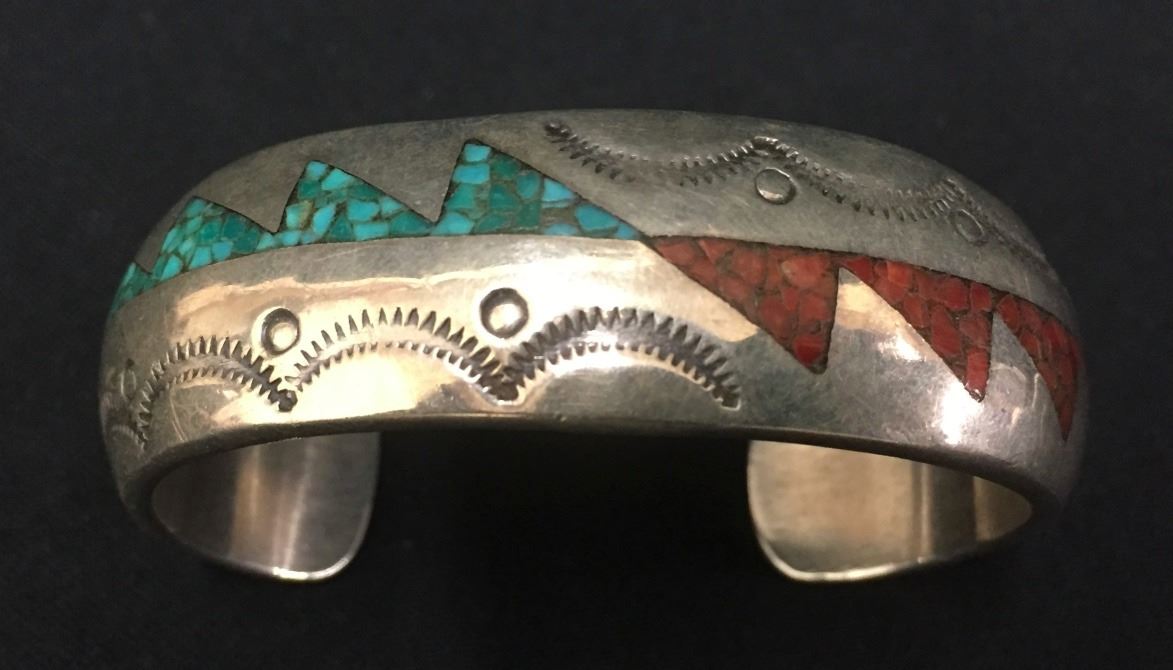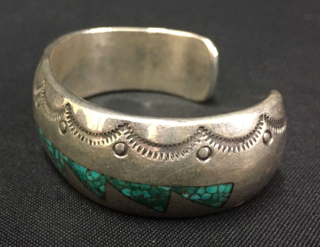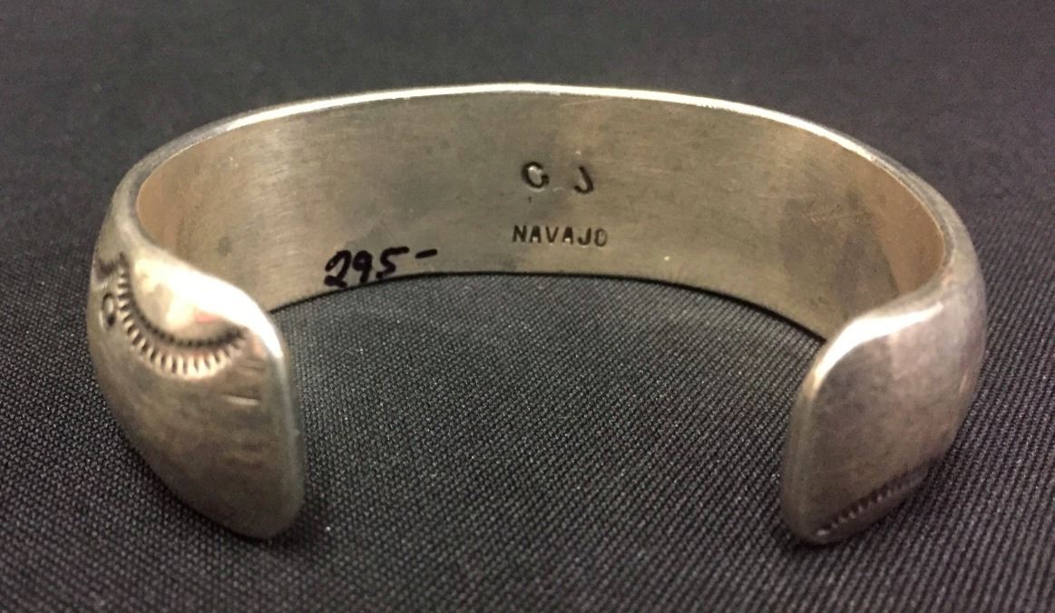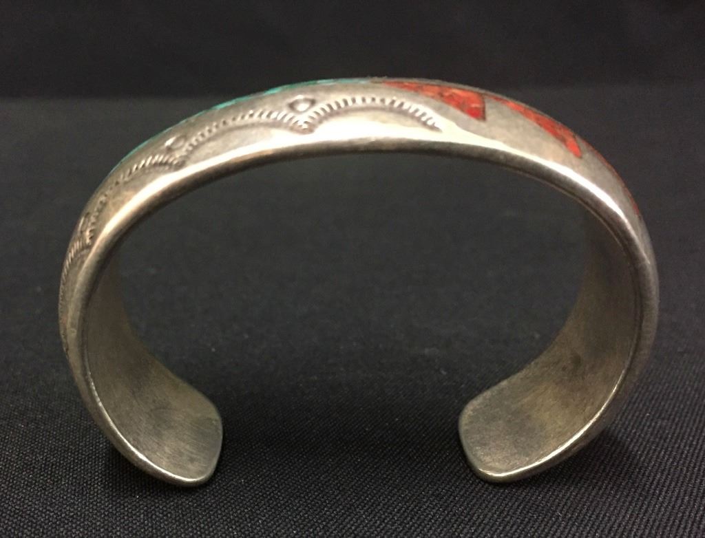 Maker: Corbet Joe, Navajo. Approx. Age: Vintage. Size: Measures 5” inside plus there is a 1.25” gap. It’s .75” wide and weighs 43.8g. Condition: Good. Additional Info: Tested as sterling silver. Please look closely at the pictures - they are an important part of our description. Shipping: There will be a $5 handling / packaging fee for shipping this lot. The actual cost of postage will be added on top of that.