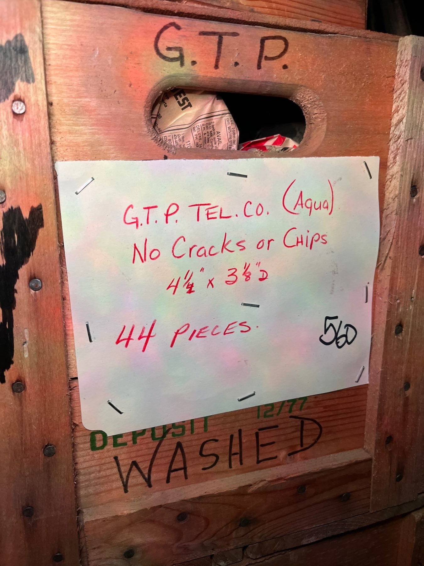 Vintage Insulators g.t.p.tel.co aqua no cracks or chips 3 1/2×3 1/8 44 pieces in total washed