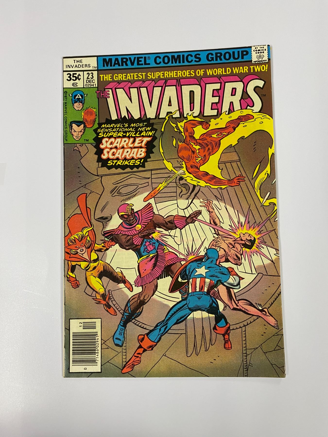 The Invaders #23 Marvel's Most Sensarional new super villain Scarlet Scarab strikes!, $0.35, Dec 1977,
