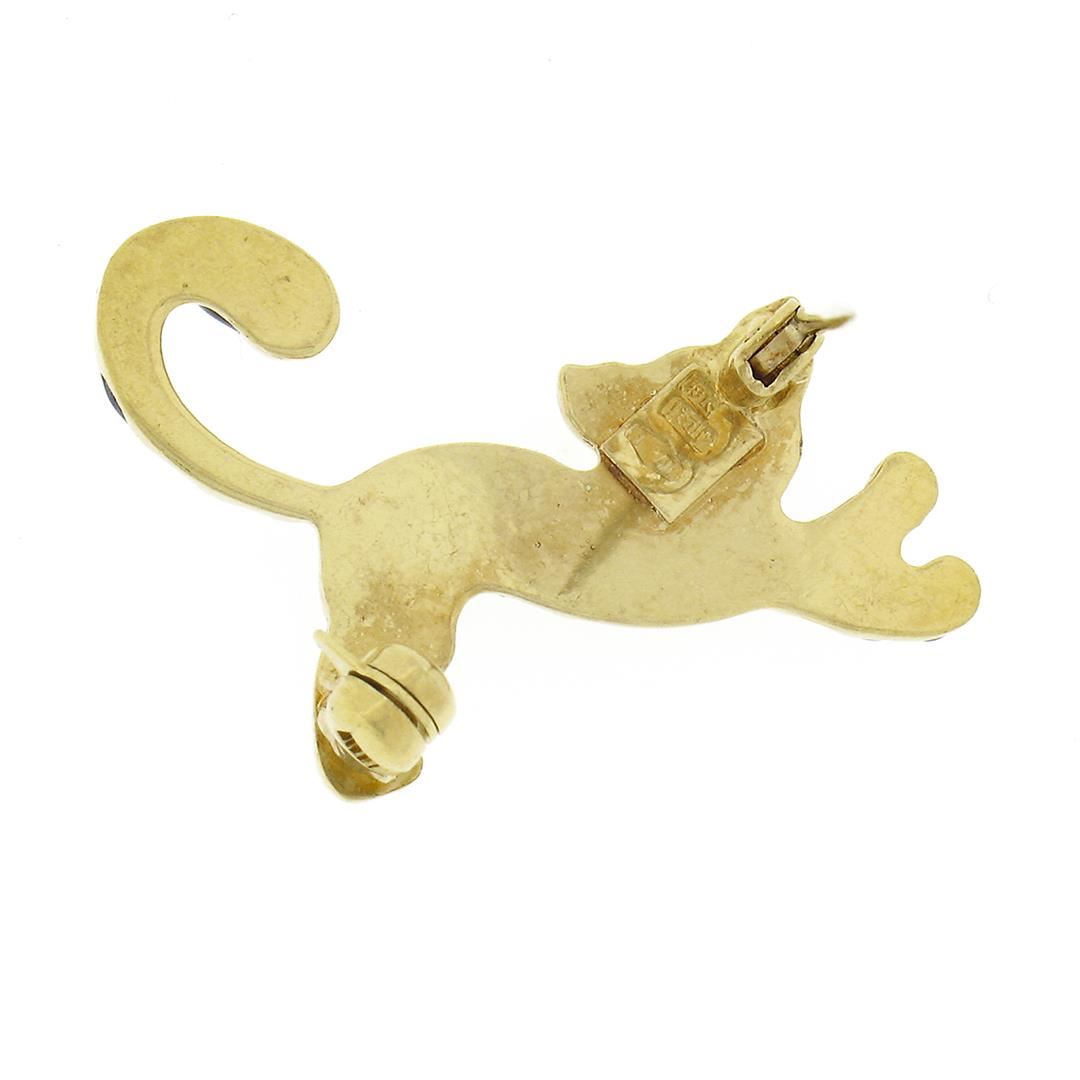 A vintage Italian solid 18k yellow gold tiger brooch, with enamel work. Measures 19.85x27.20mm and weighs a total of 3.24 grams.
