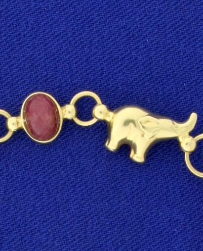 Vintage Italian Made Emerald, Ruby, and Sapphire Elephant Bracelet