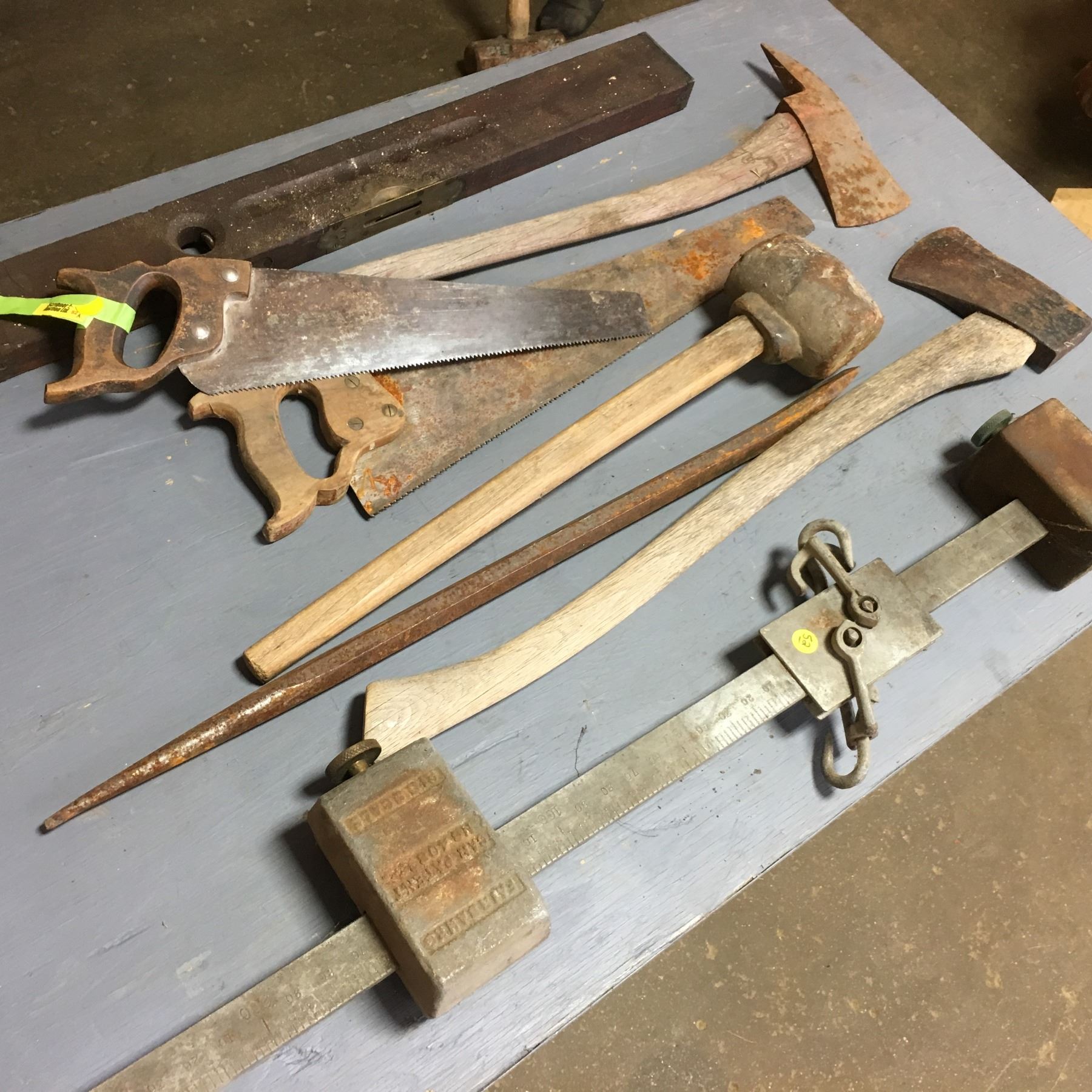 Vintage Items: Beam Scale, Axes, Saws & Level