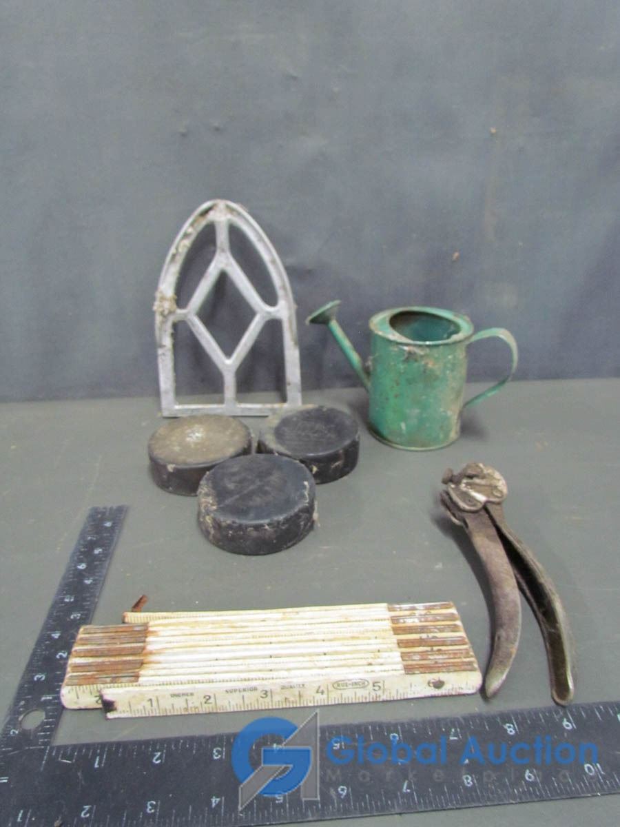 Vintage Items - Ruler, Pucks, Mini Watering Can
