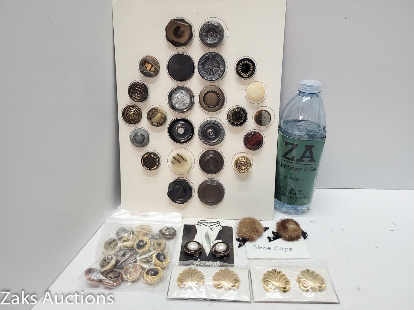 Vintage Itesm - 1970s Coat Buttons, Sears Promo Girft (2) Shoie Clips & Artwear Mens Collar Clips & 1 Fur Shoe Clip