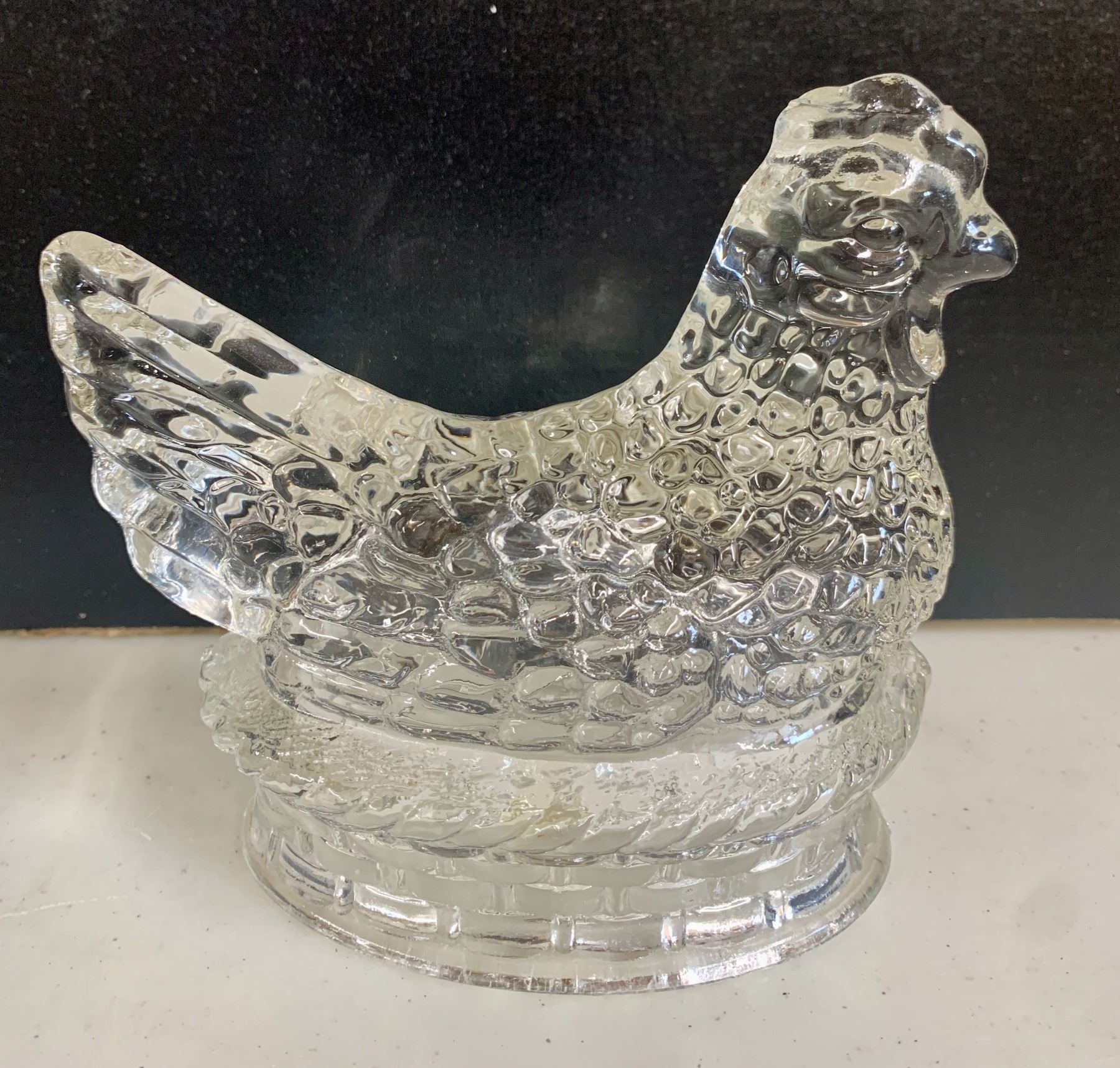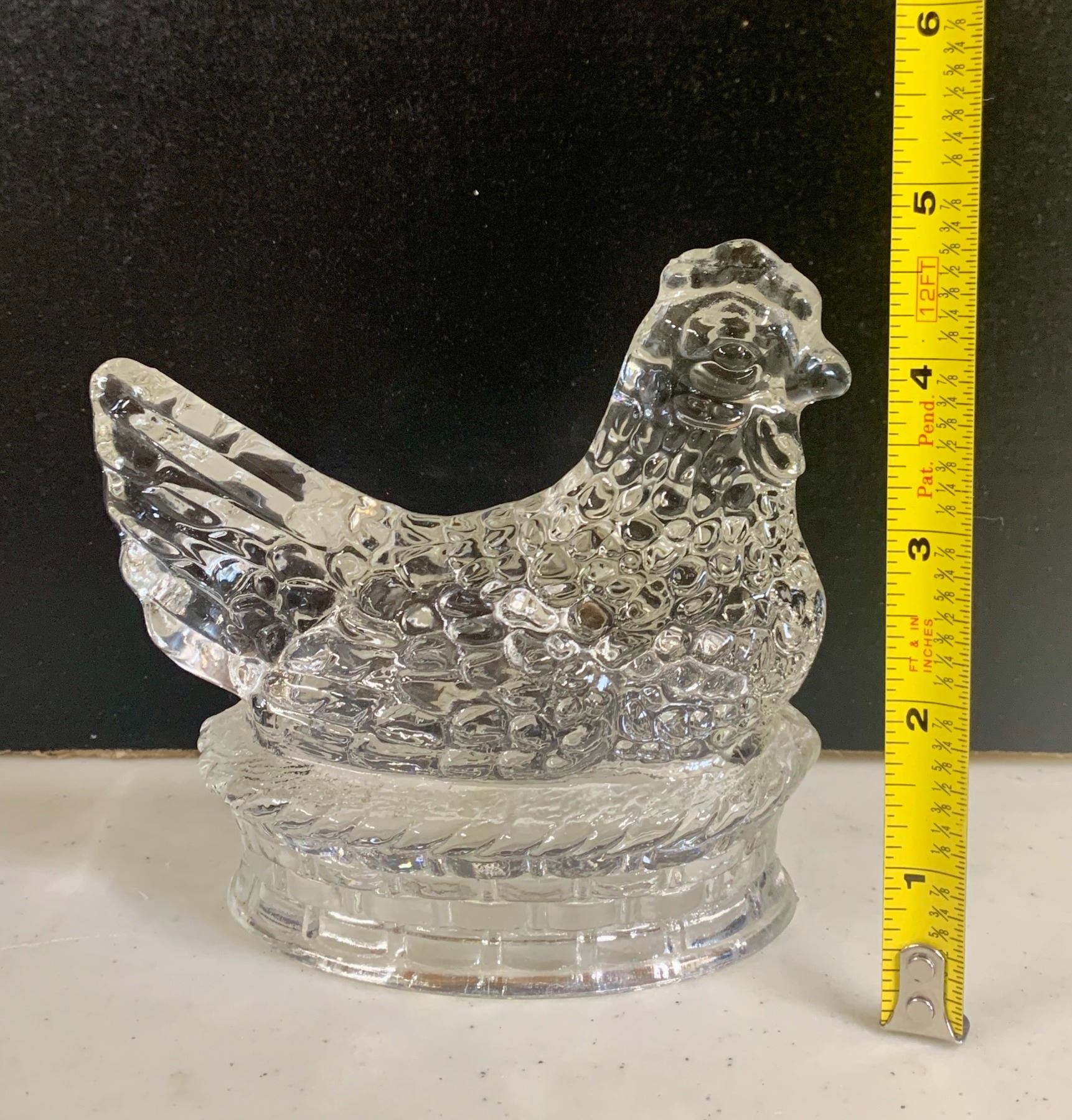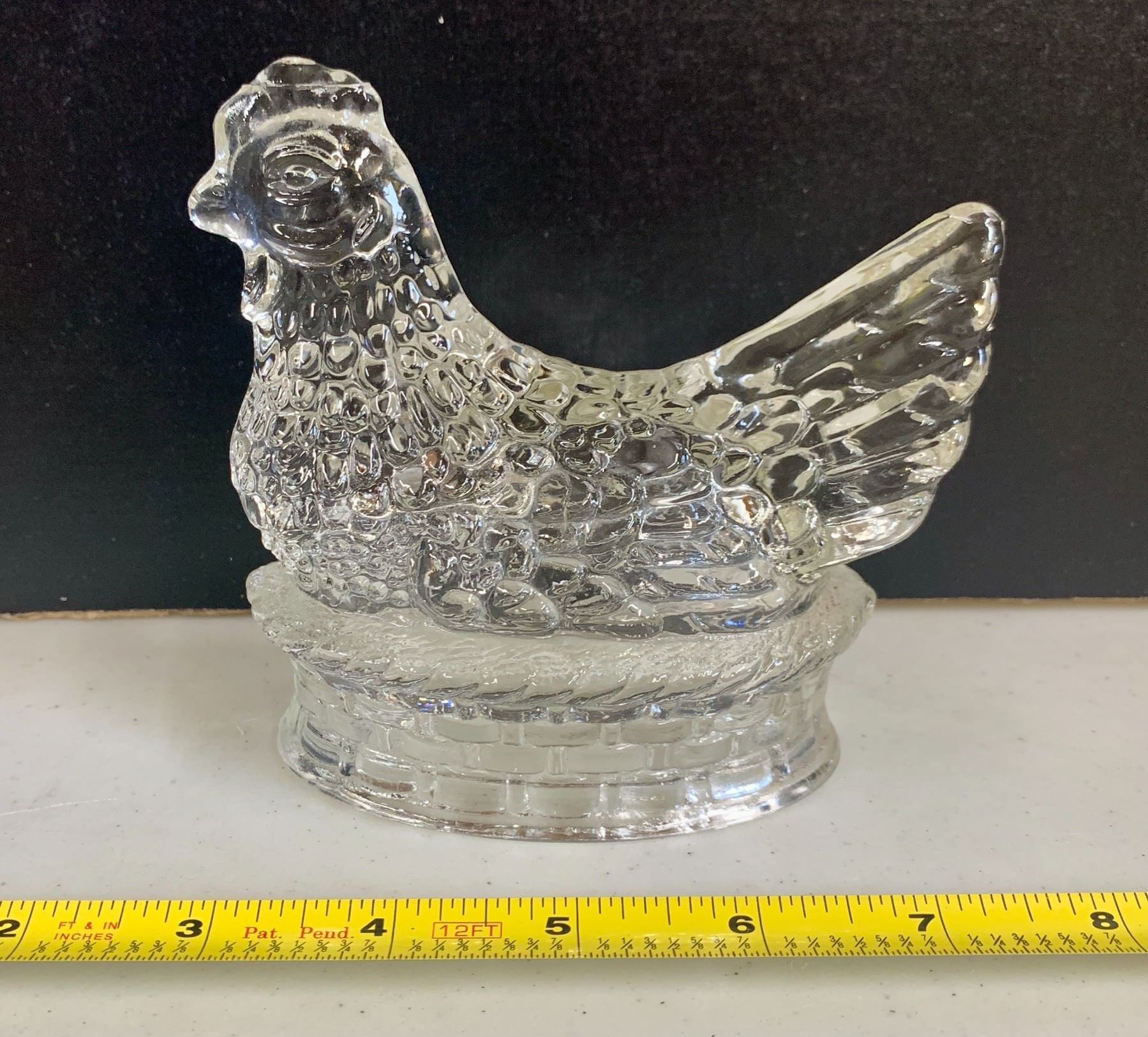 Vintage J H Millstein Glass Chicken Hen on Nest Candy Container Chicken
