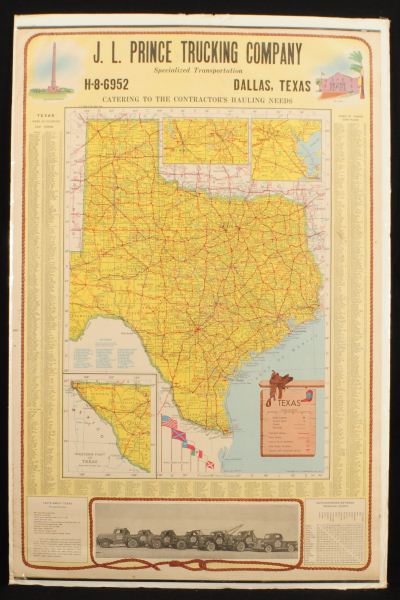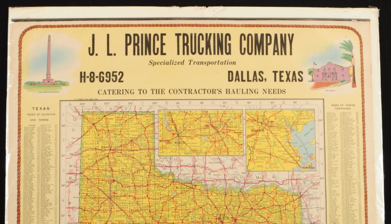 J.L. Prince Texas Road and Advertising Poster, Measures 41" x 27"