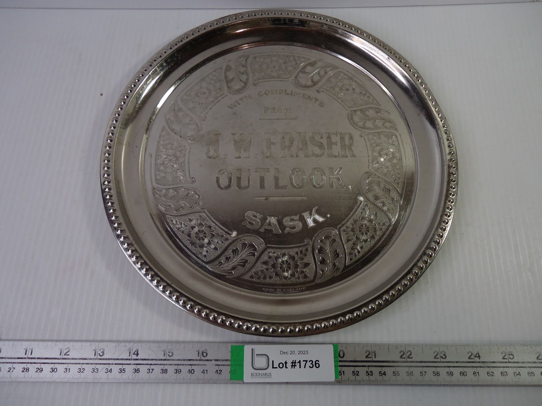 Vintage J.W. Fraser Advertising Tray from Outlook, Saskatchewan