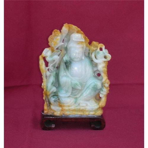 There are lots of Kwan Yin Jade Stone display. However, this one is special because of its clever use of the stone color and nature. Since the stone has a splash of yellow outside, the limitation in the designing is higher. But, the craftsman makes something with nothing. This piece gives you a calm and peaceful feeling.