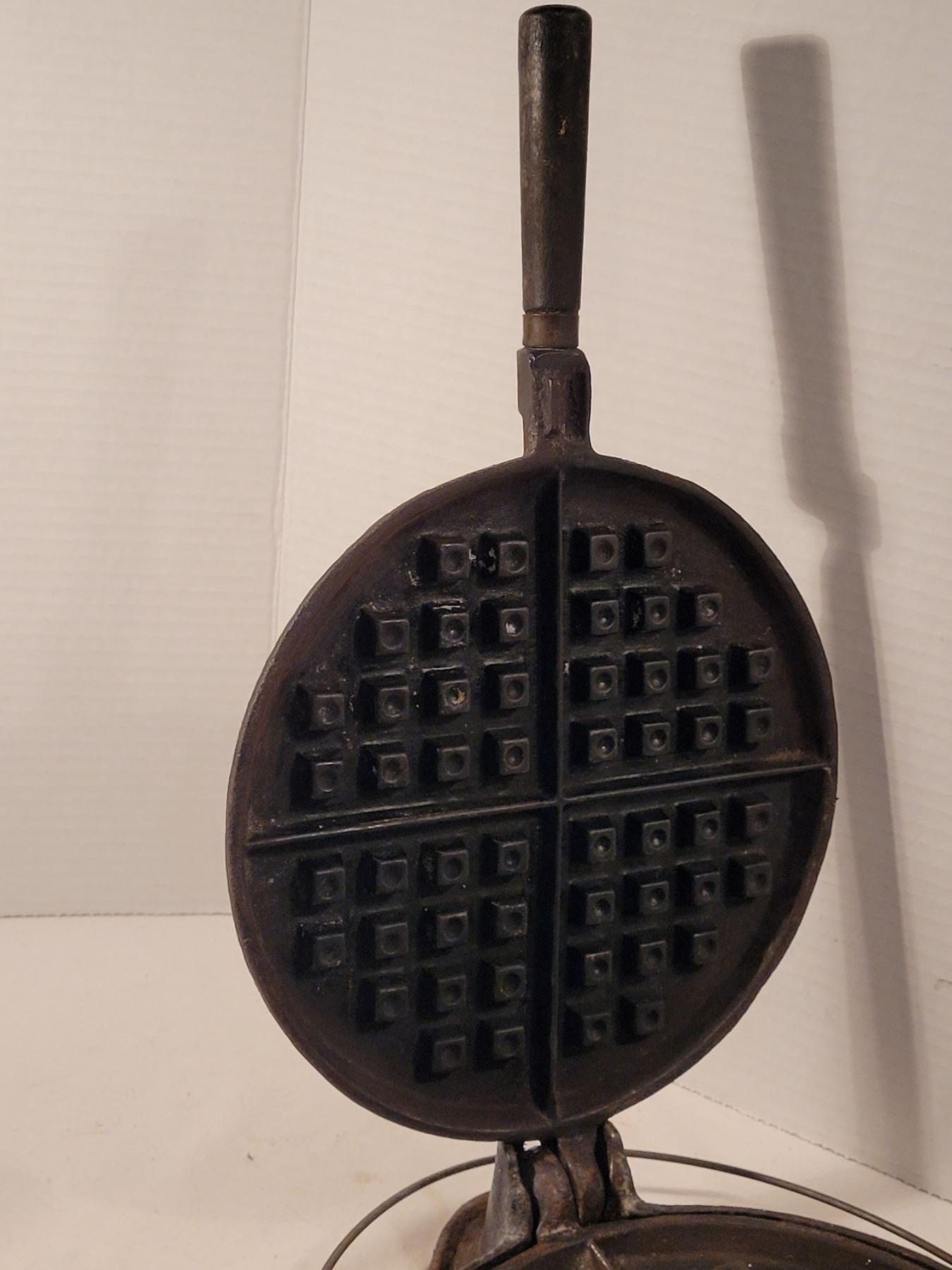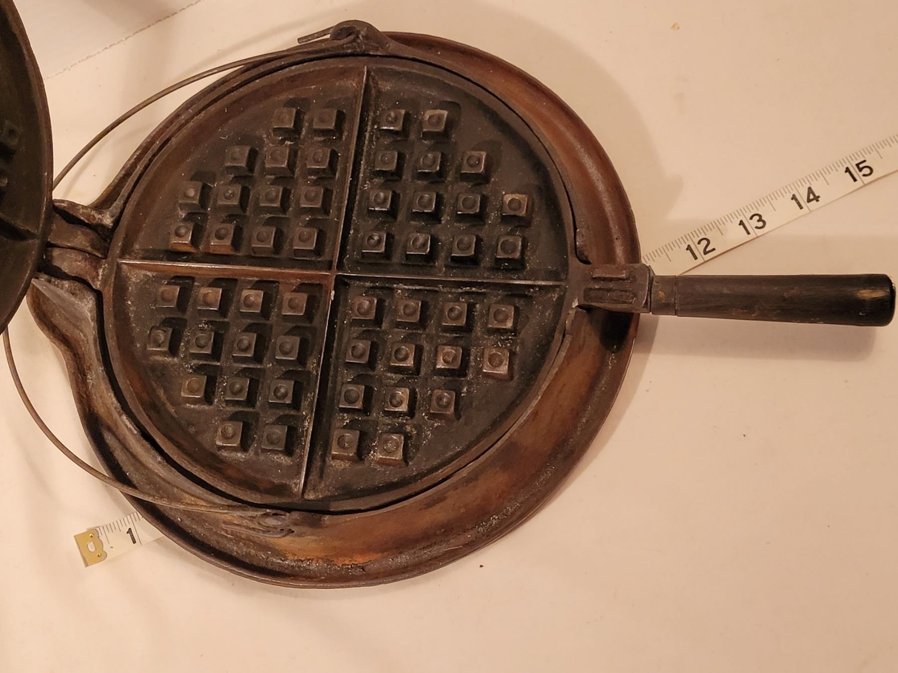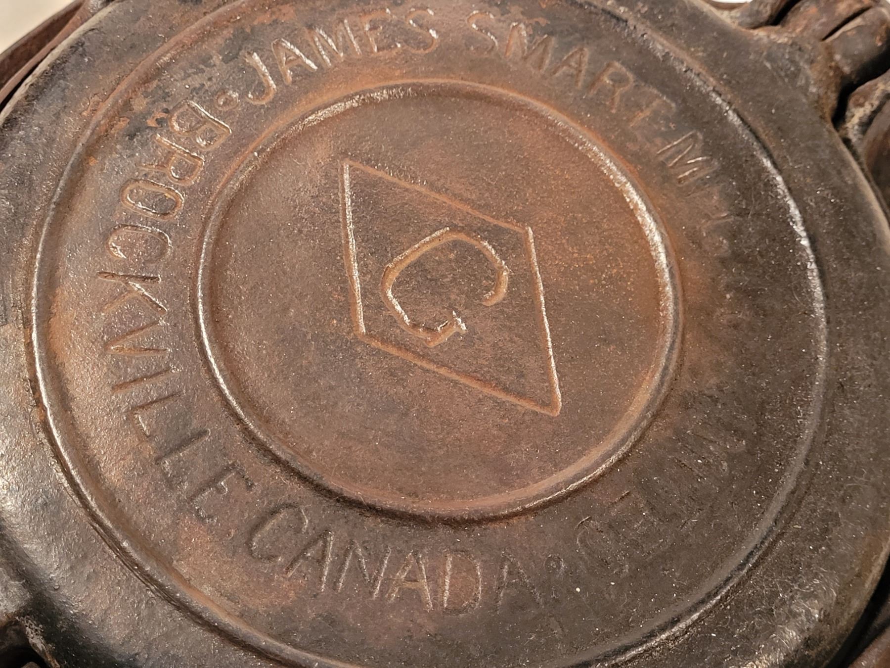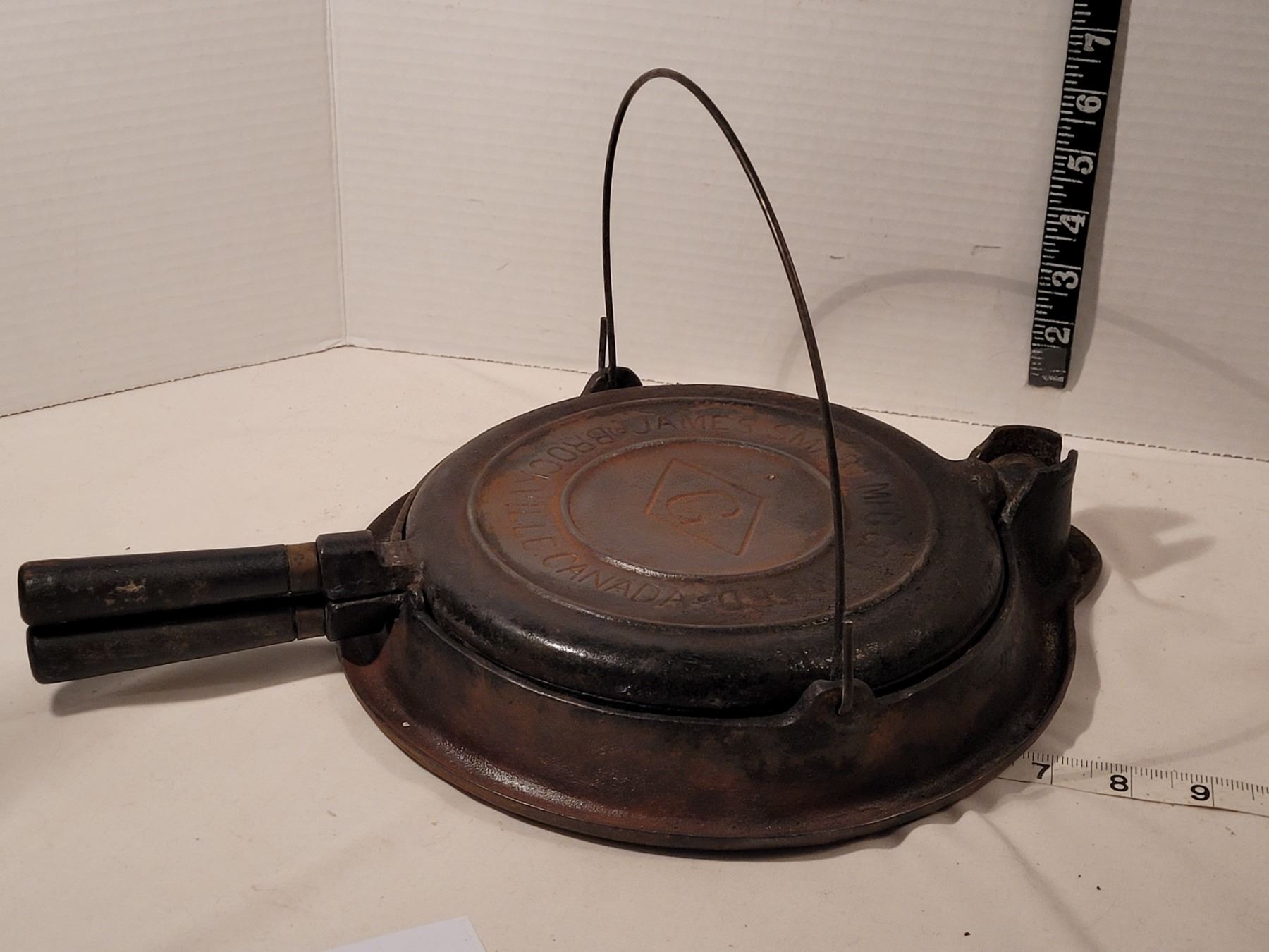 Vintage James Smart, cast iron, rotating, stove top waffle iron. Made in Canada.