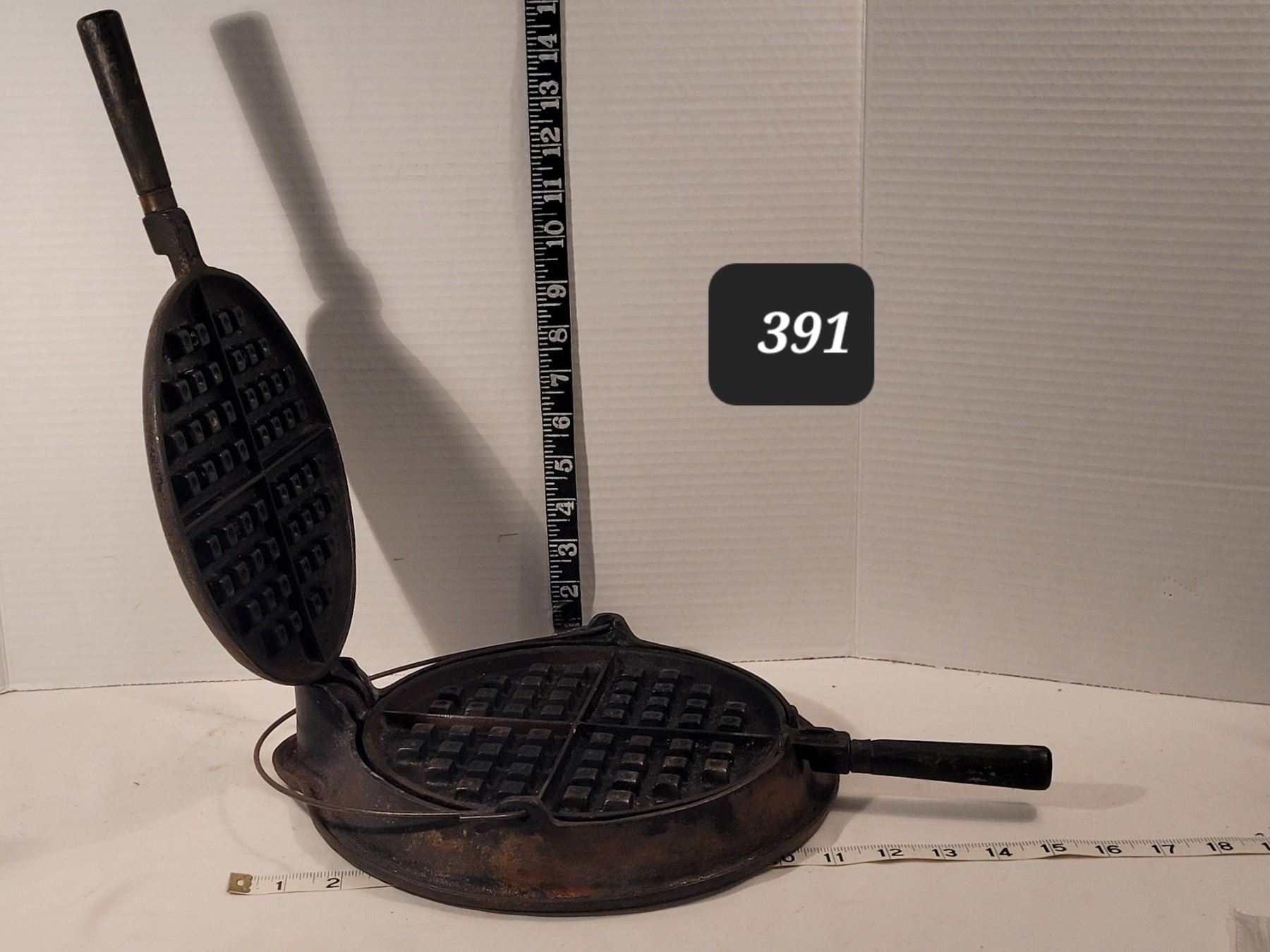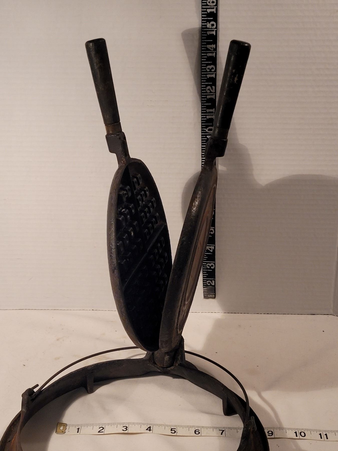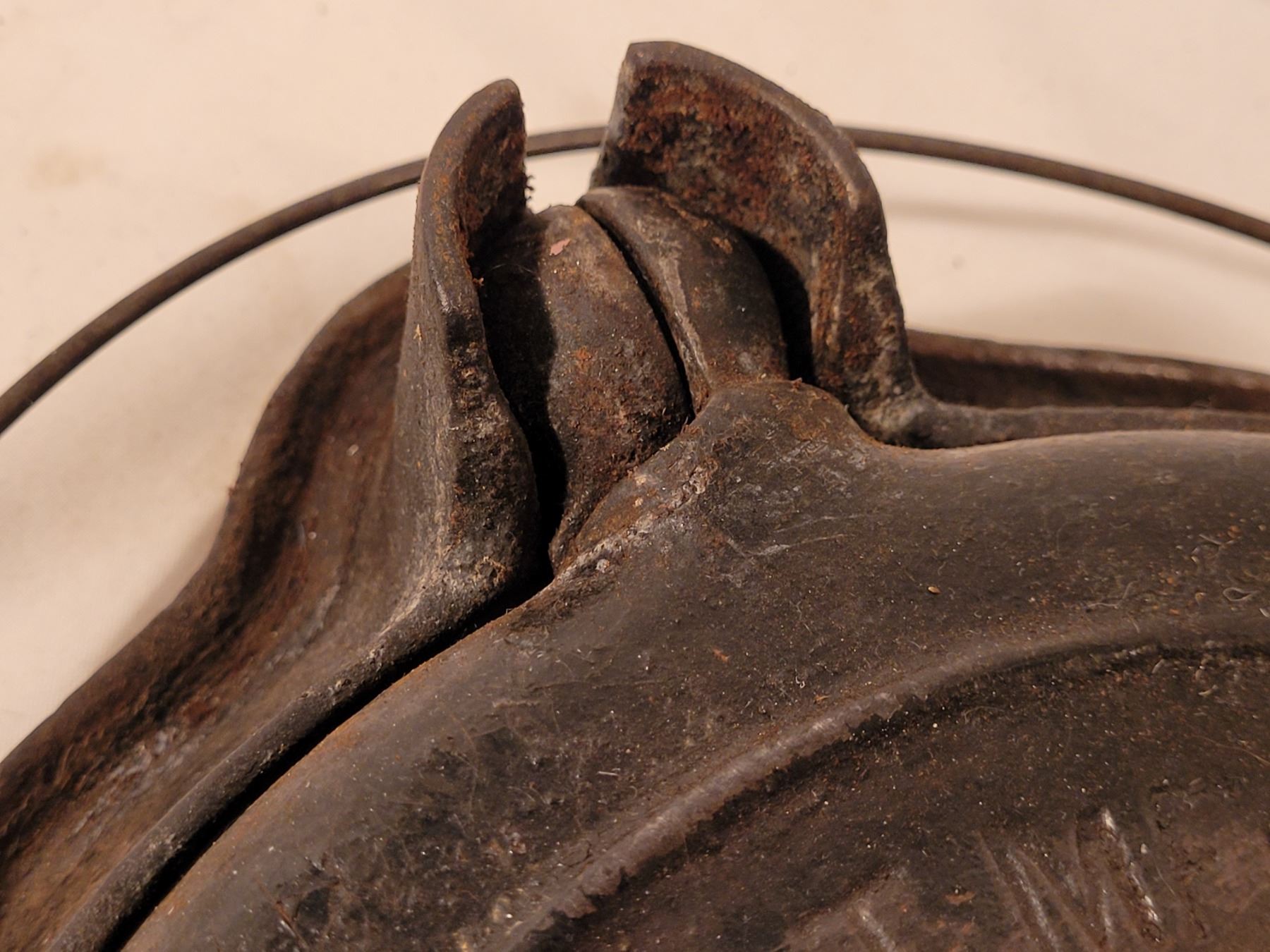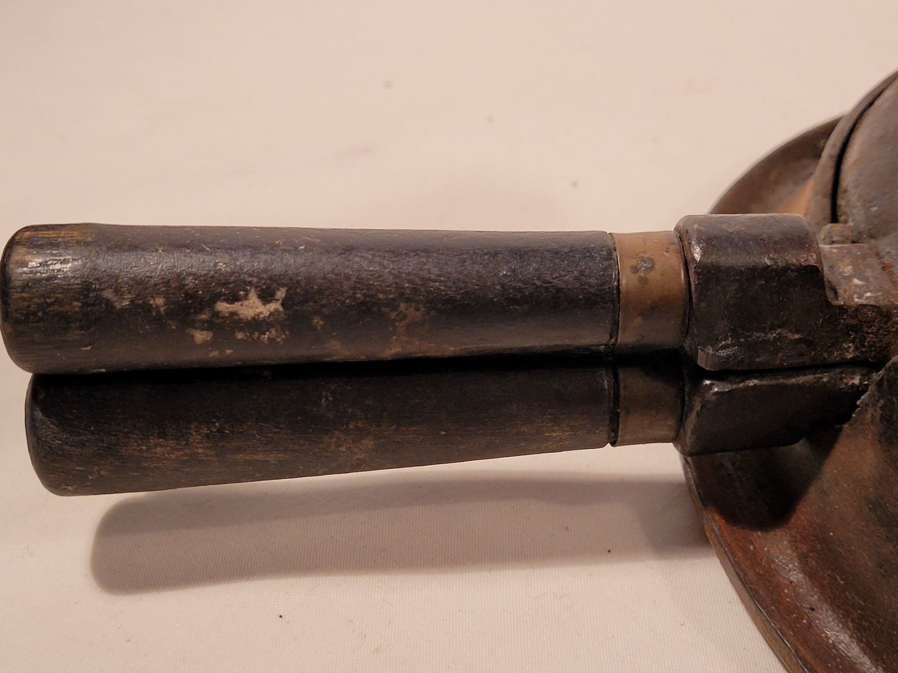 Vintage James Smart, cast iron, rotating, stove top waffle iron. Made in Canada.