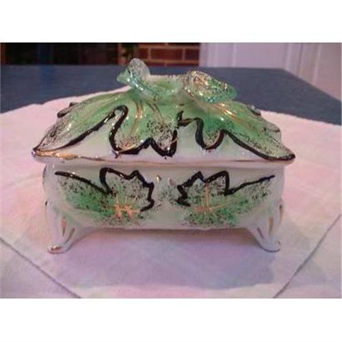 Footed cigarette box or trinket box Made in Japan by Anasson. Paper sticker still on bottom.  Excellent condition.