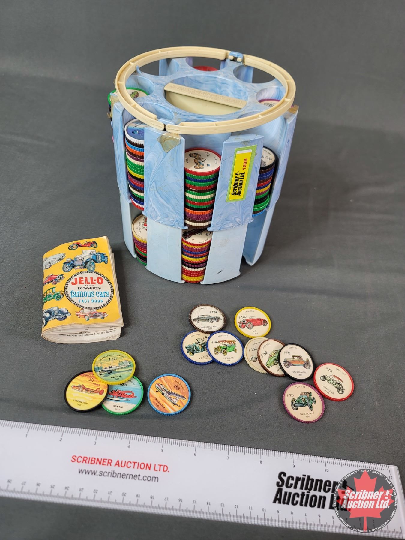 Vintage Jello Car Automobile Pog Set & Holder & JELLO Famous Cars Fact Book (c.1960's) (SEE PICS!)