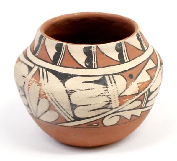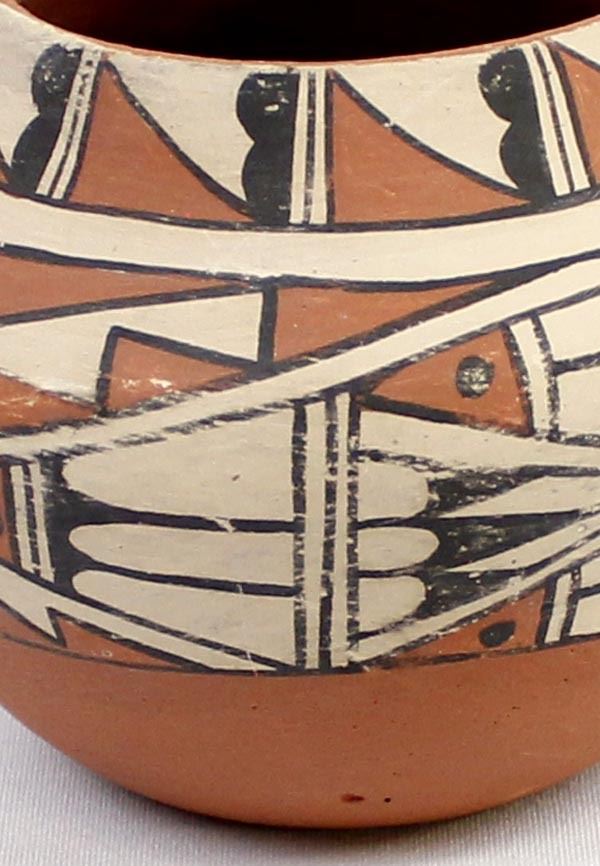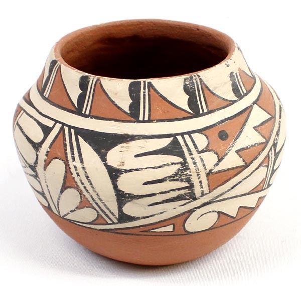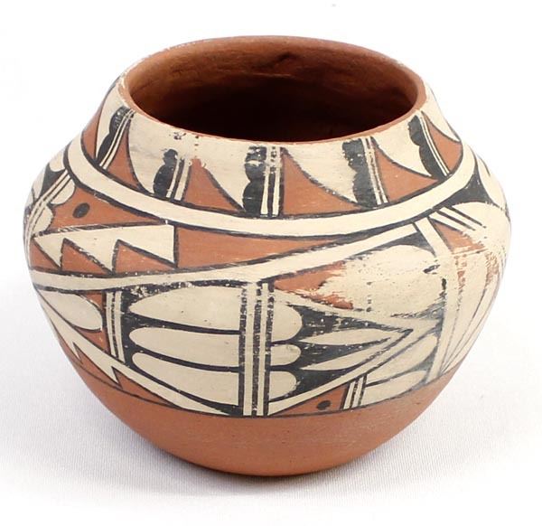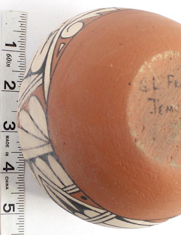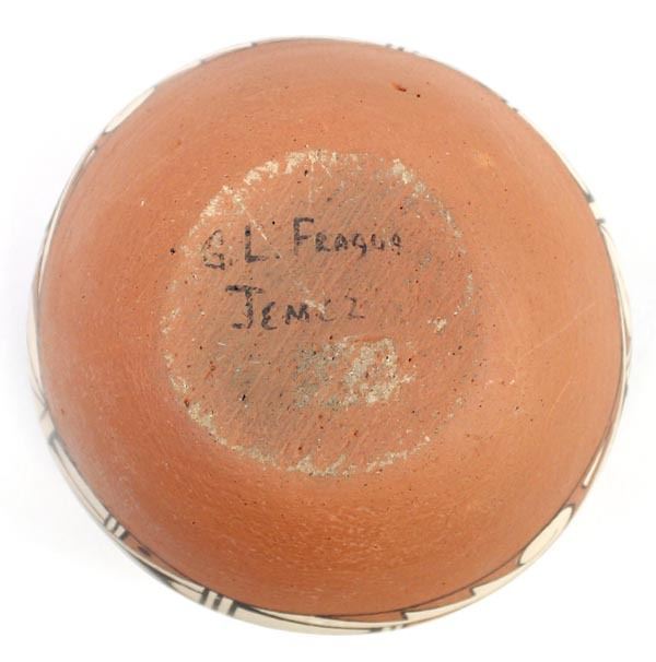 Vintage Native American Jemez Pottery Bowl by G. L. Fragua, measures 4.5'' x 5.5'' and is signed on the bottom, paint loss