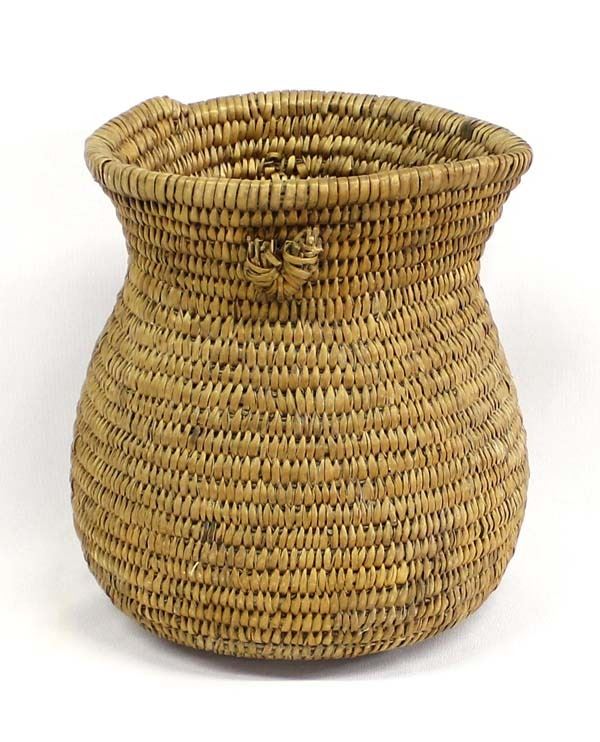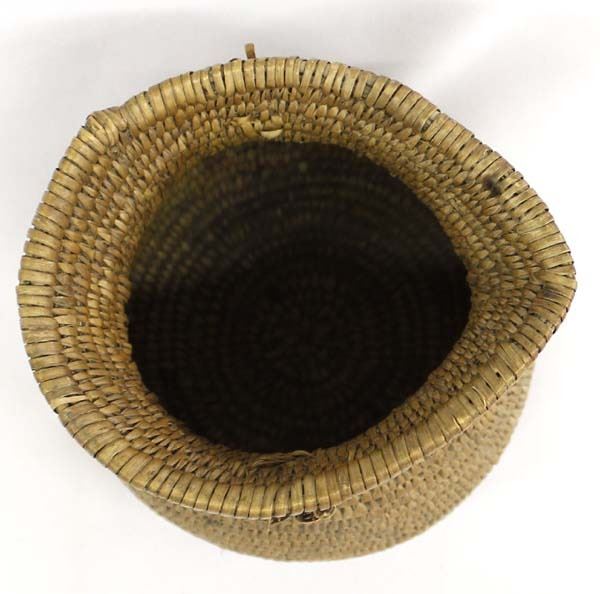Vintage Native American Jicarilla Apache Basket Pitcher, measures 8'' x 7'', missing handle