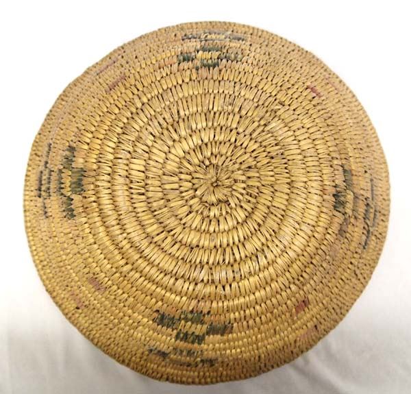 Vintage Native American Jicarilla Apache Tri-Colored Basket, measures 12''D x 4''H