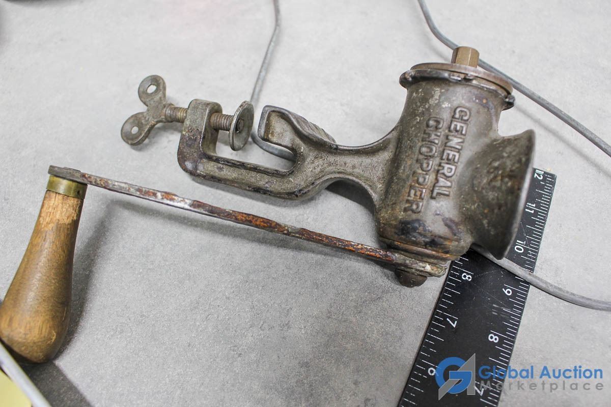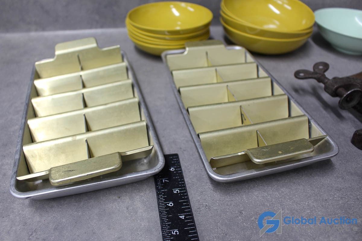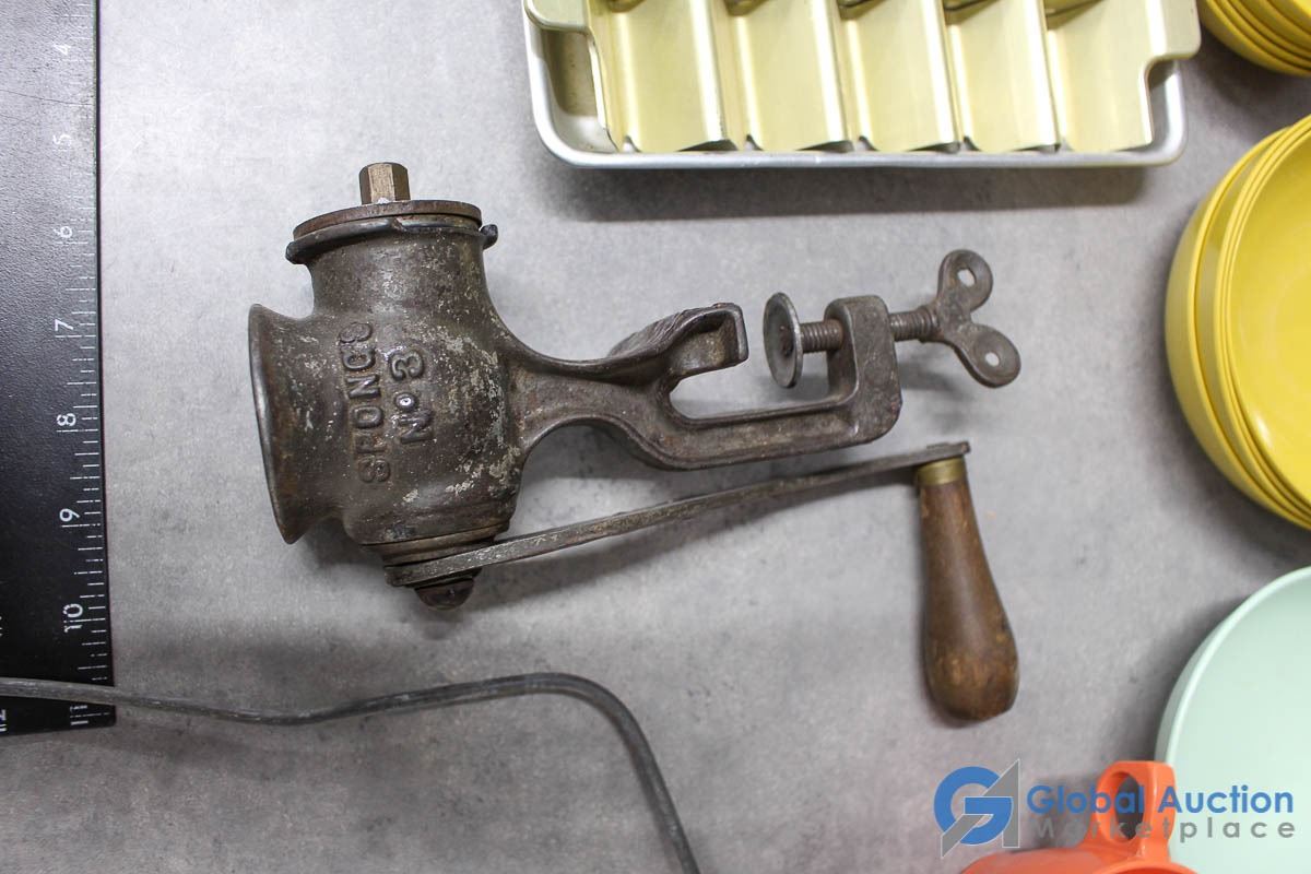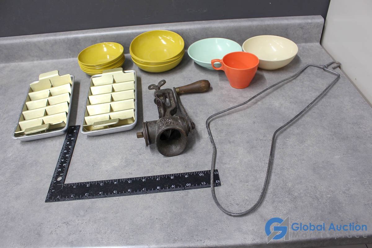Ice cube trays, General Chopper meat grinder, maplex dishware.