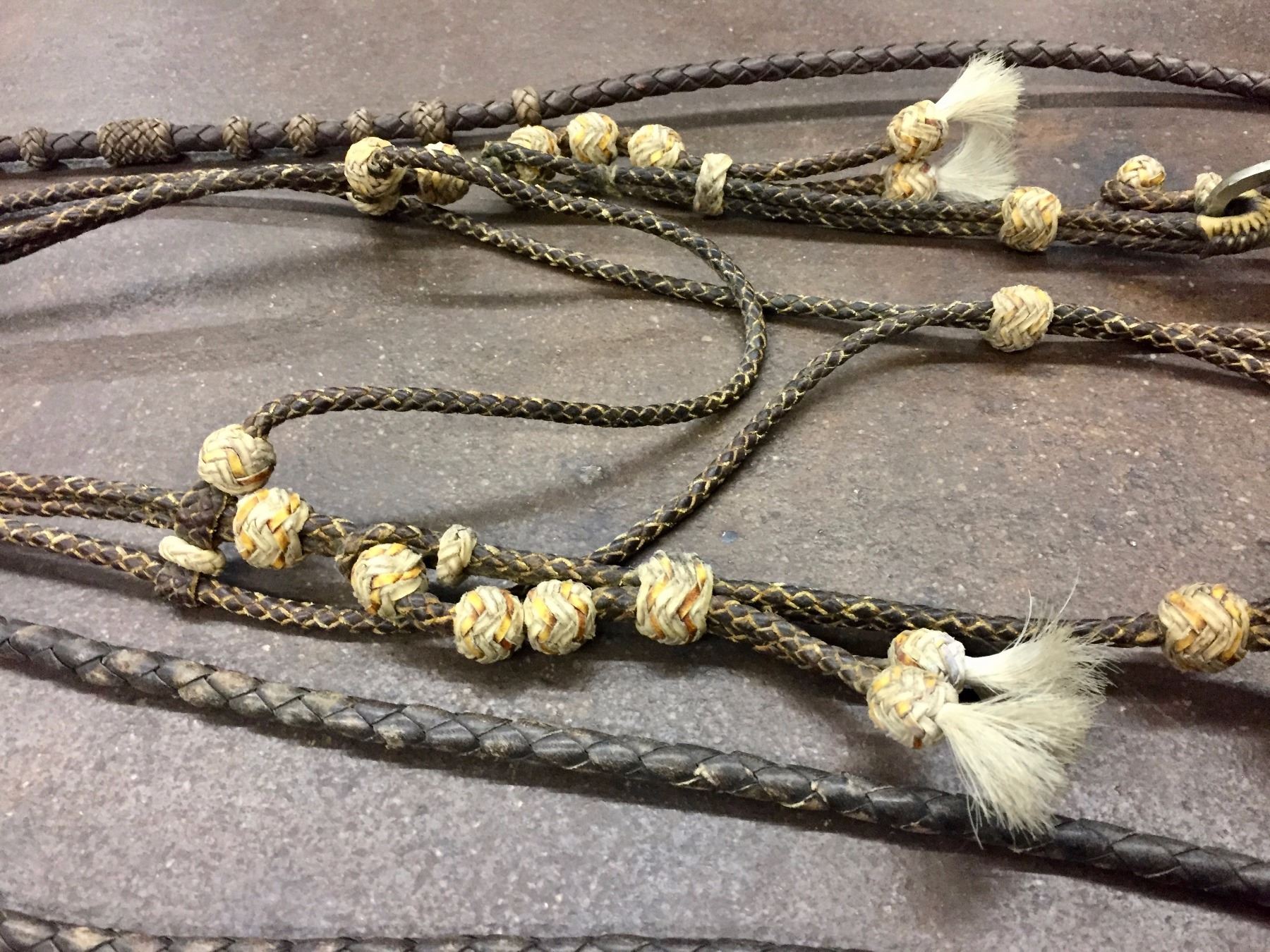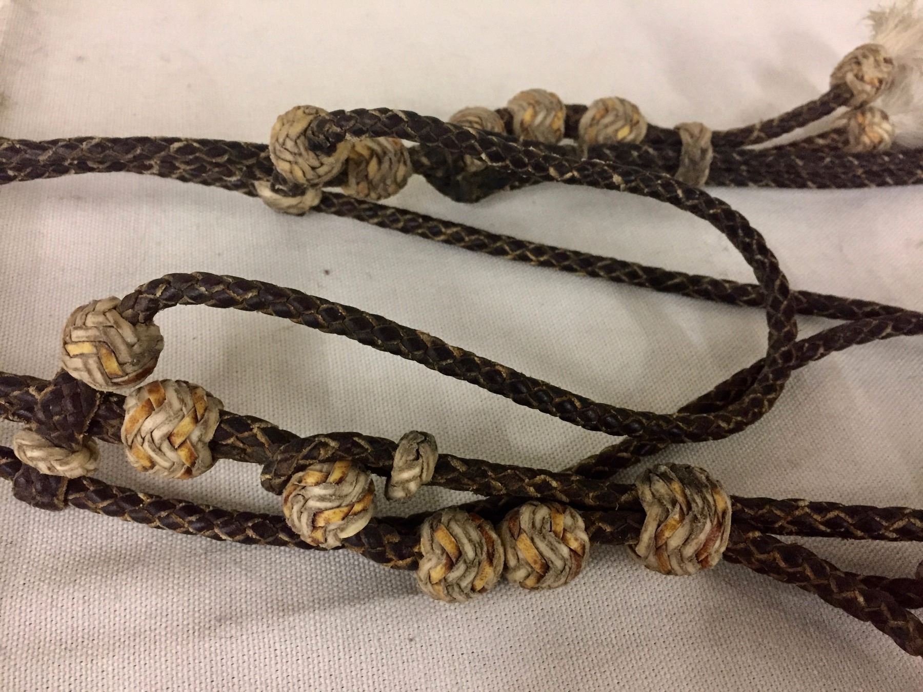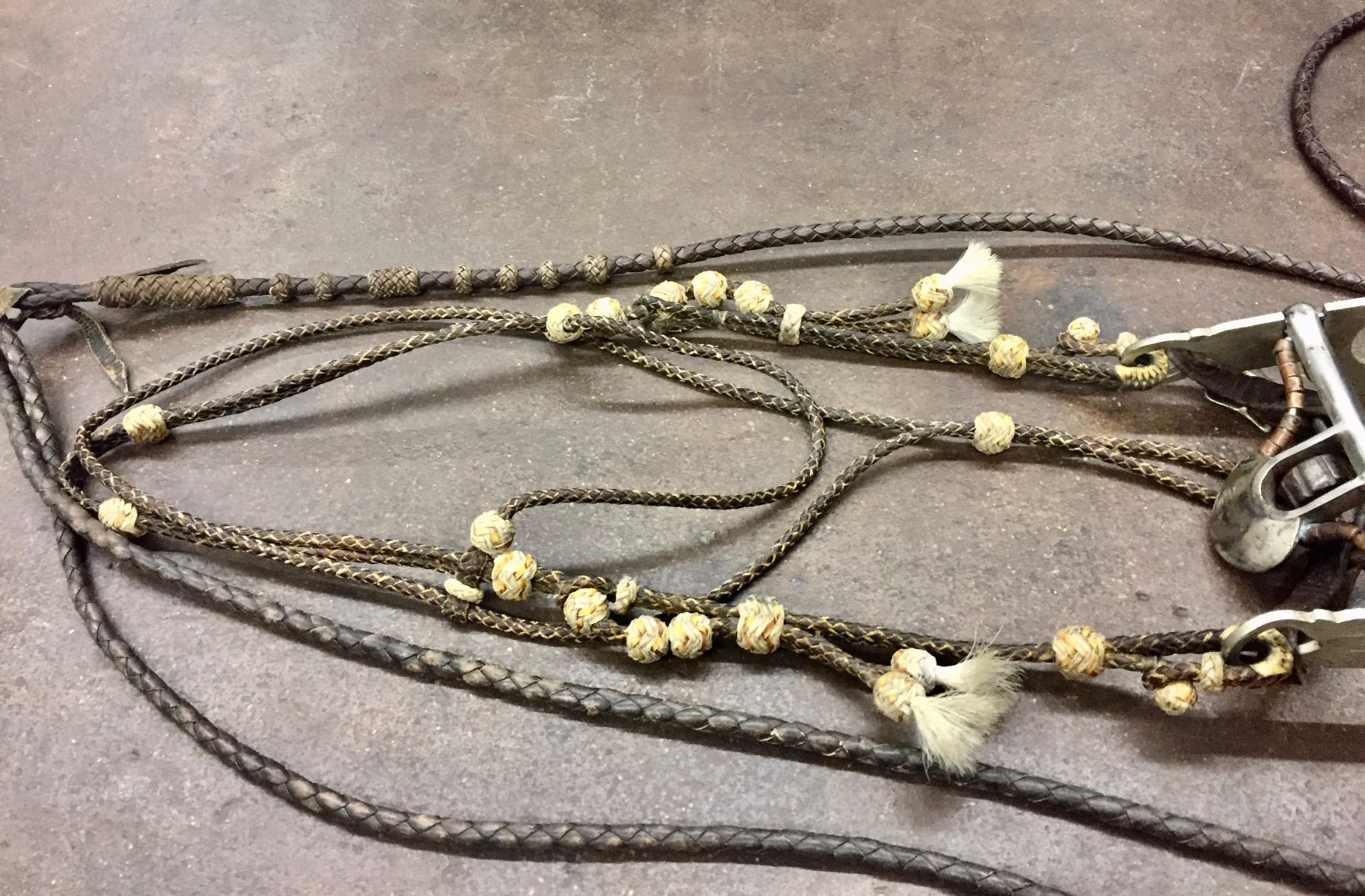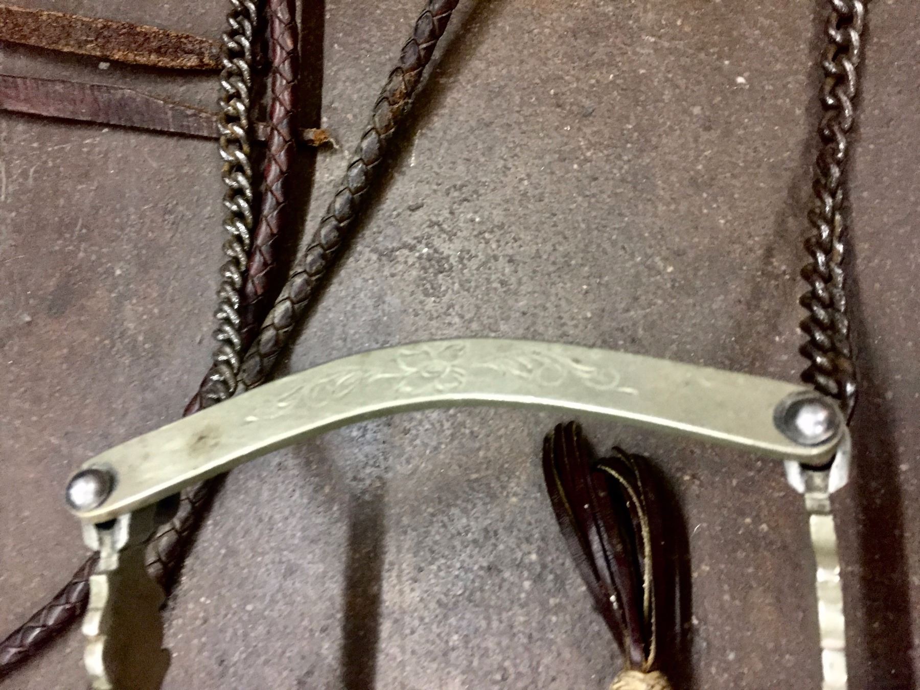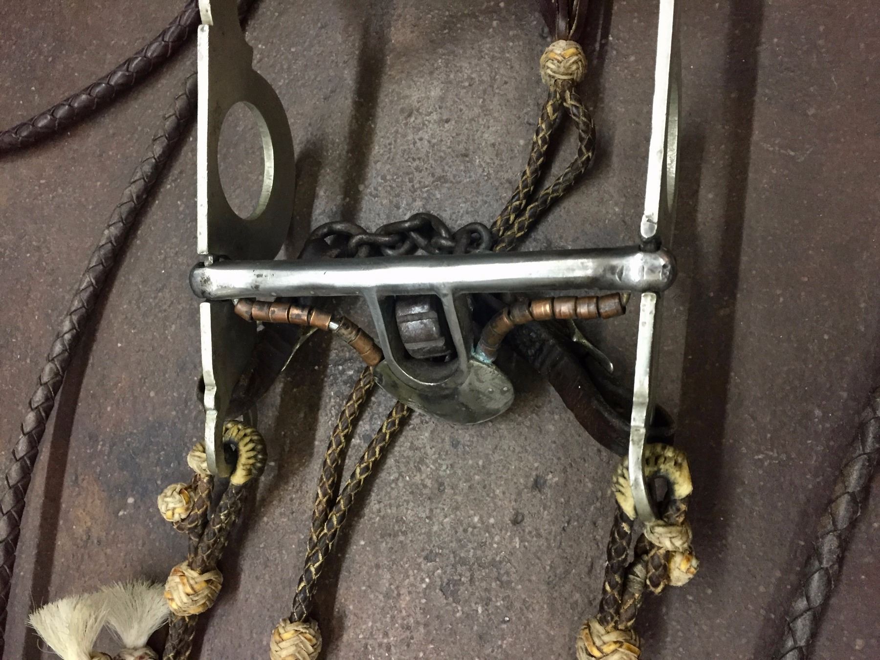 Maker: Bit is marked, Keystone S.F. Cal. Headstall and reins are handmade (braided) leather and rawhide. Approx. Age: Vintage. Size: Bit has a 5" mouthpiece and is 8.5" long. Headstall and reins are pretty standard size and are also adjustable. Additional Info: Nice vintage bit and nicely braided headstall and reins. Condition: Pretty good for its age, normal wear expected. Please look closely at the pictures - they are an important part of our description. Shipping: There will be a $7 handling / packaging fee for shipping this lot. The actual cost of postage will be added on top of that.