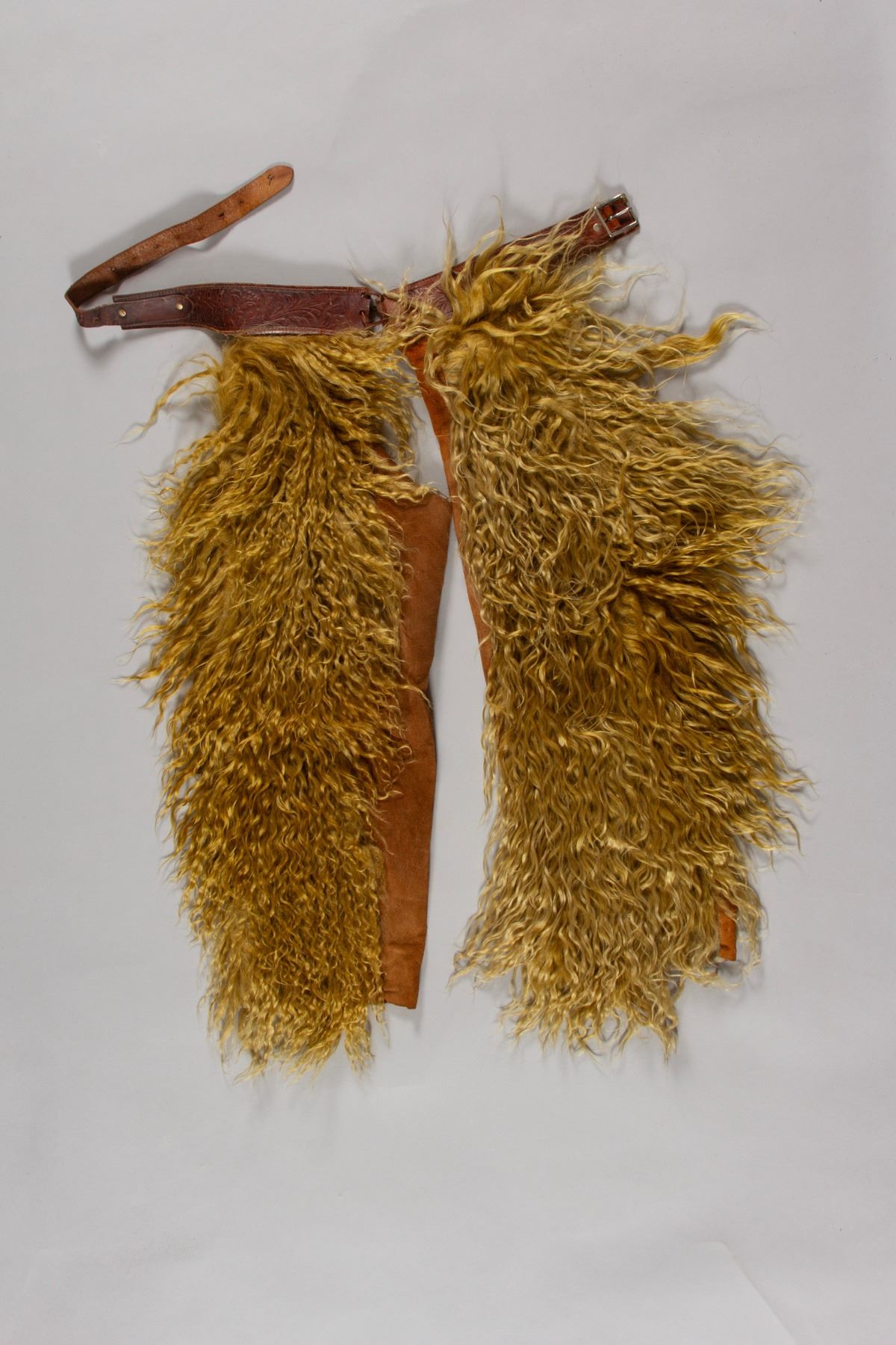 Great pair of kid's wooly chaps. Tooled floral design belt.