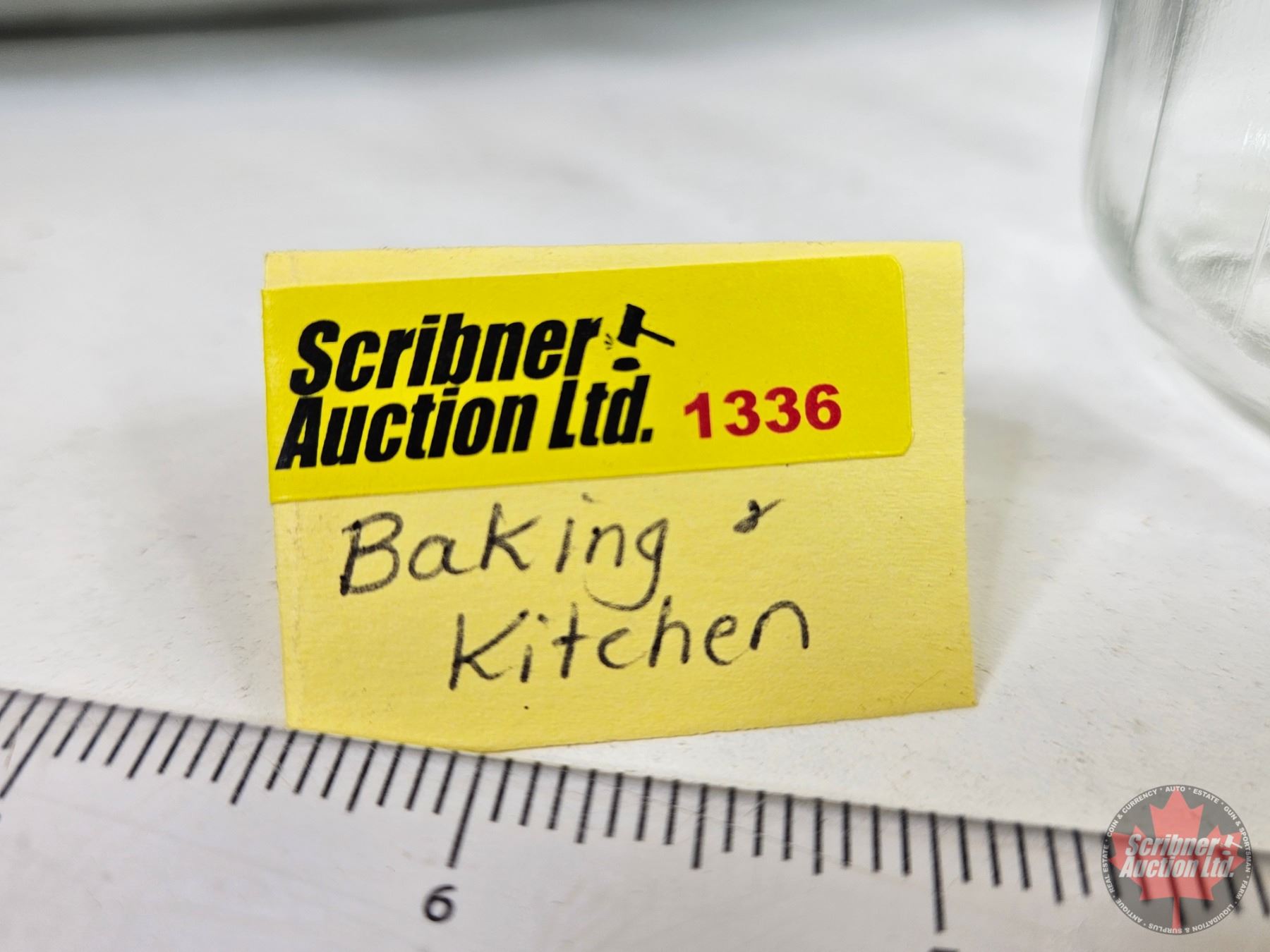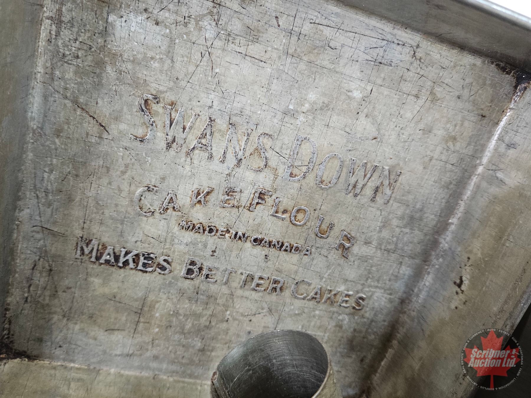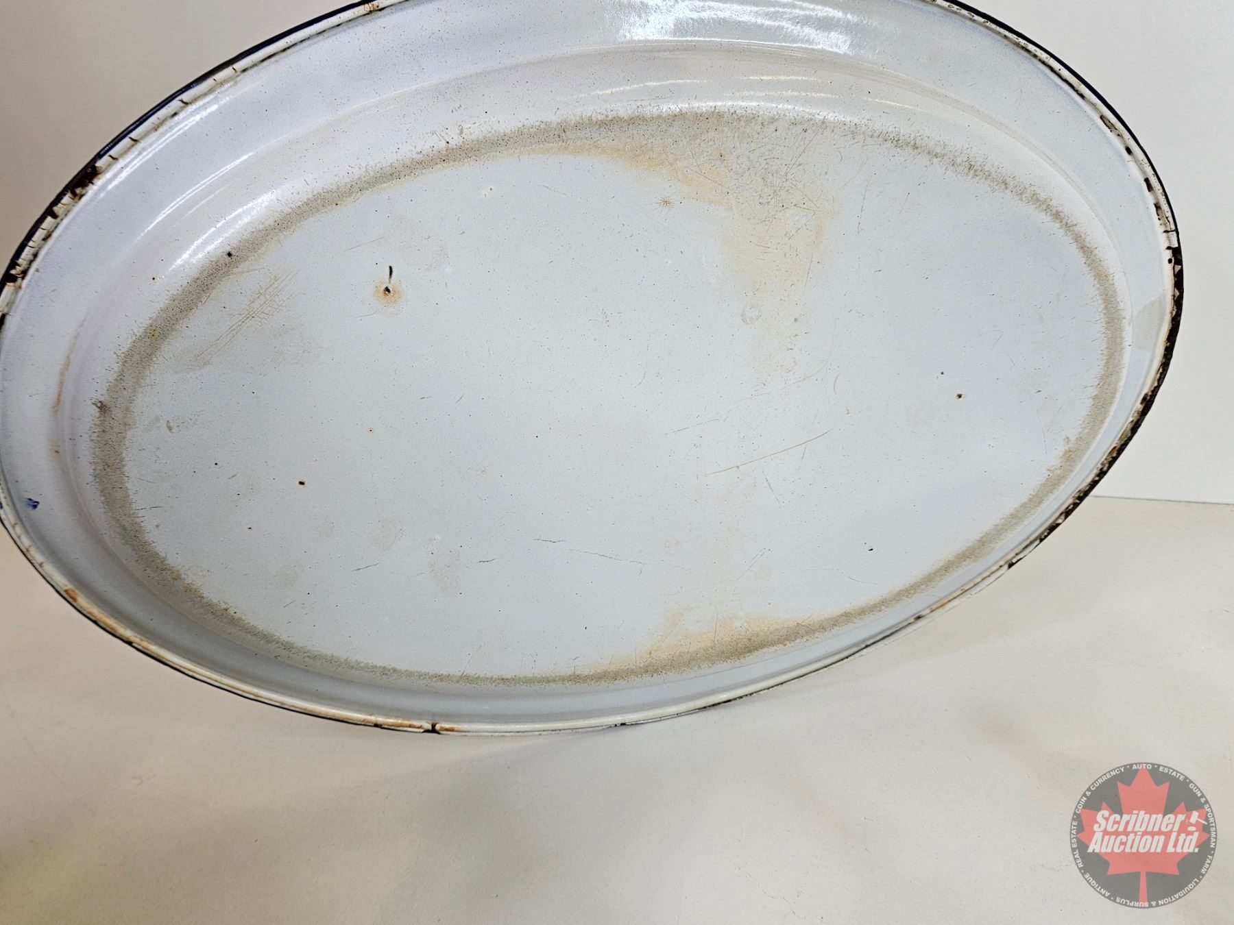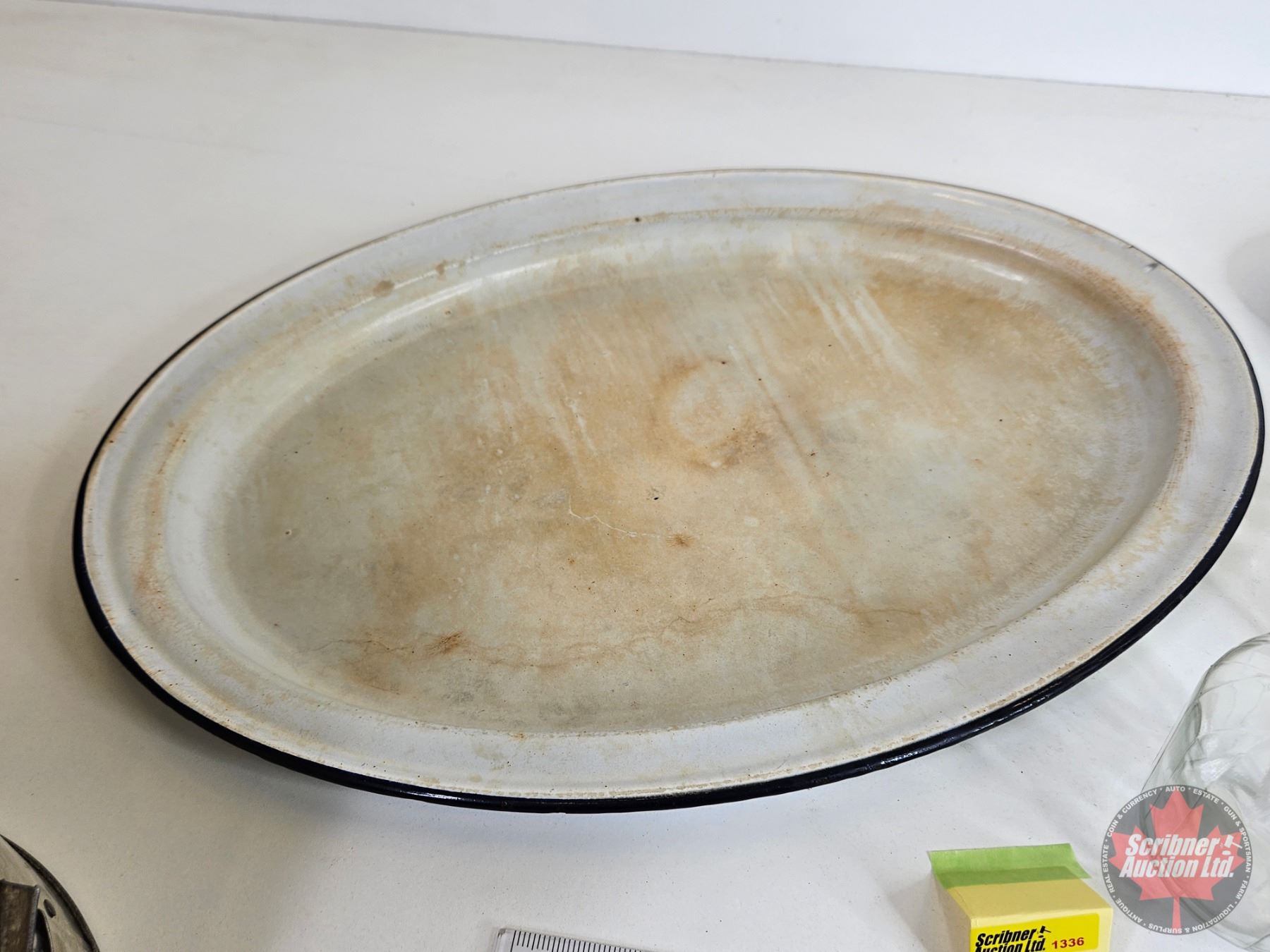 Vintage Kitchen Collectors Combo: Enamel Platter; Cake Pans "Swans" Embossed; Muffin Tin; Jars; etc
