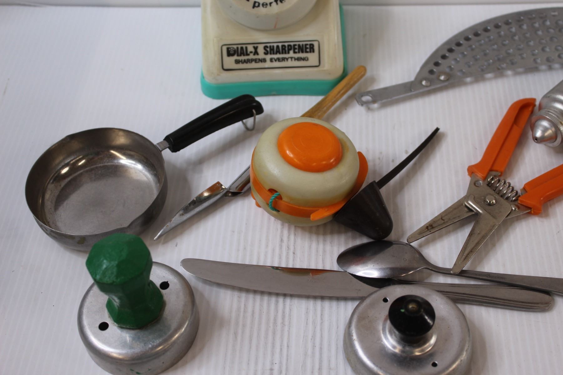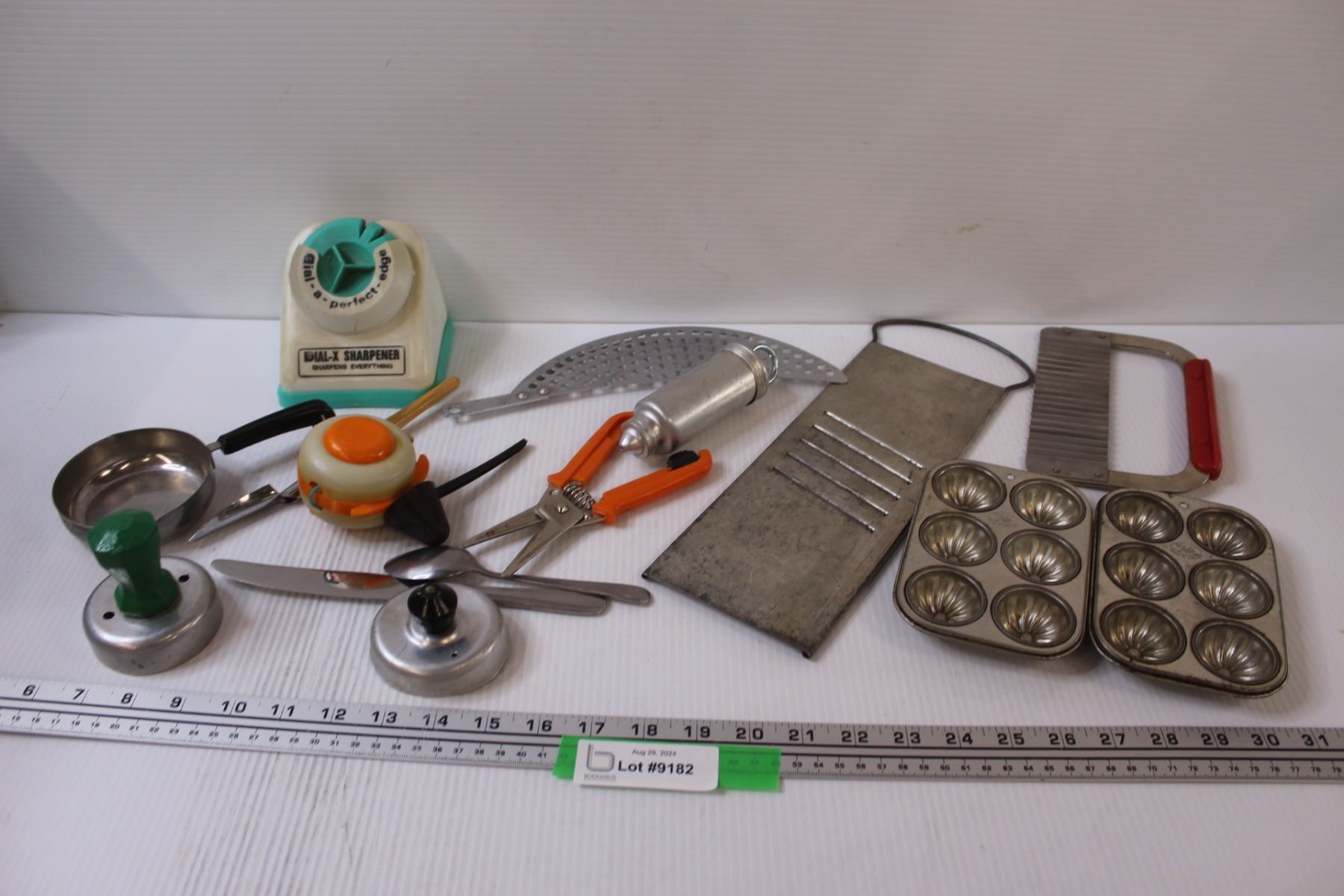 Vintage Kitchen Items: Tala Mini Baking Pans, Potato Slicer, Grater, Misc.