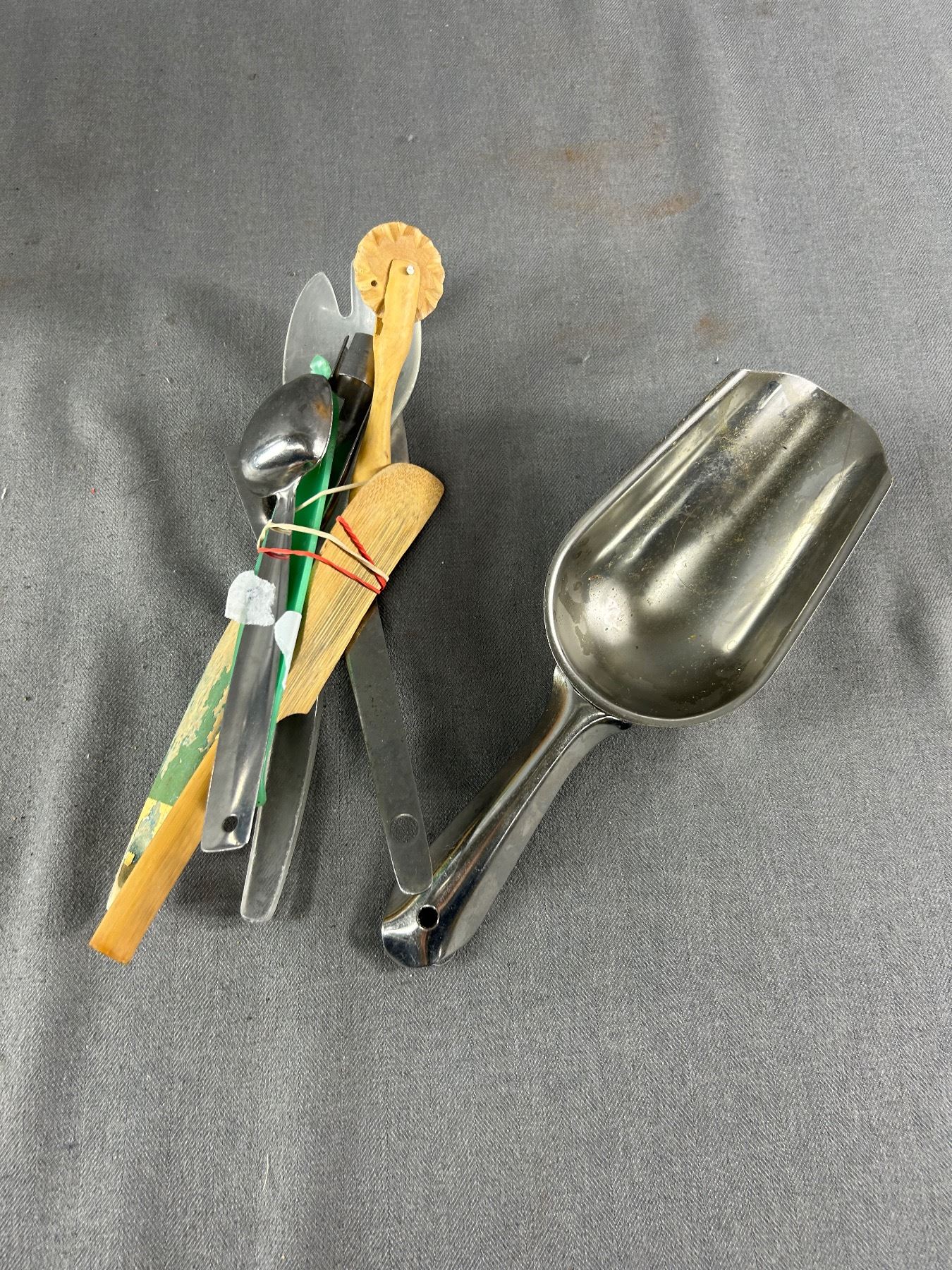 Vintage Kitchen Lot in Ice Bucket(Utensils, Puff Pastry Cutter, etc)