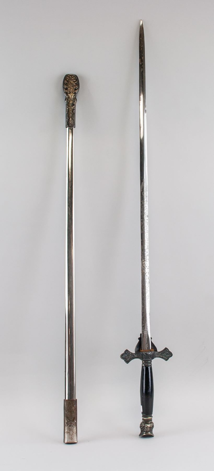 Vintage Knight of Columbus sword, with scabbard, 94 x 11 cm, 1007 grams