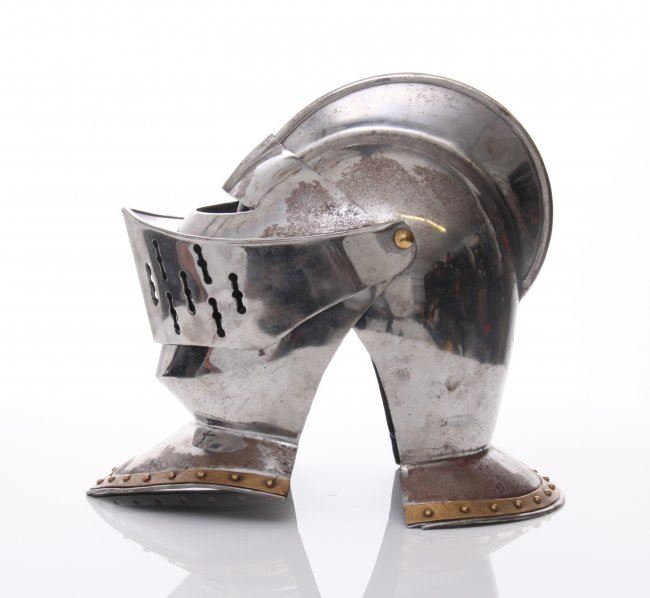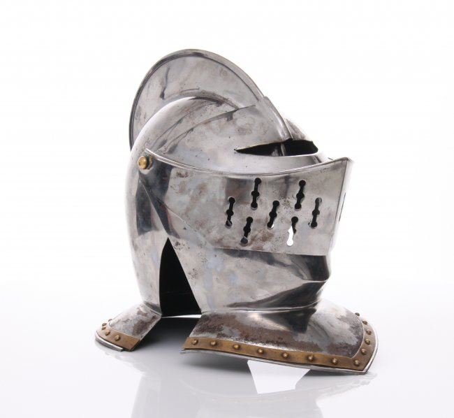 Vintage Knight's helmet. SIZE: see attached ruler photo. Photos are part of the description representing the condition report and can be used for authentication prior to the sale date. Pangaea Auctions urges Bidder's to view all attached photos in detail.