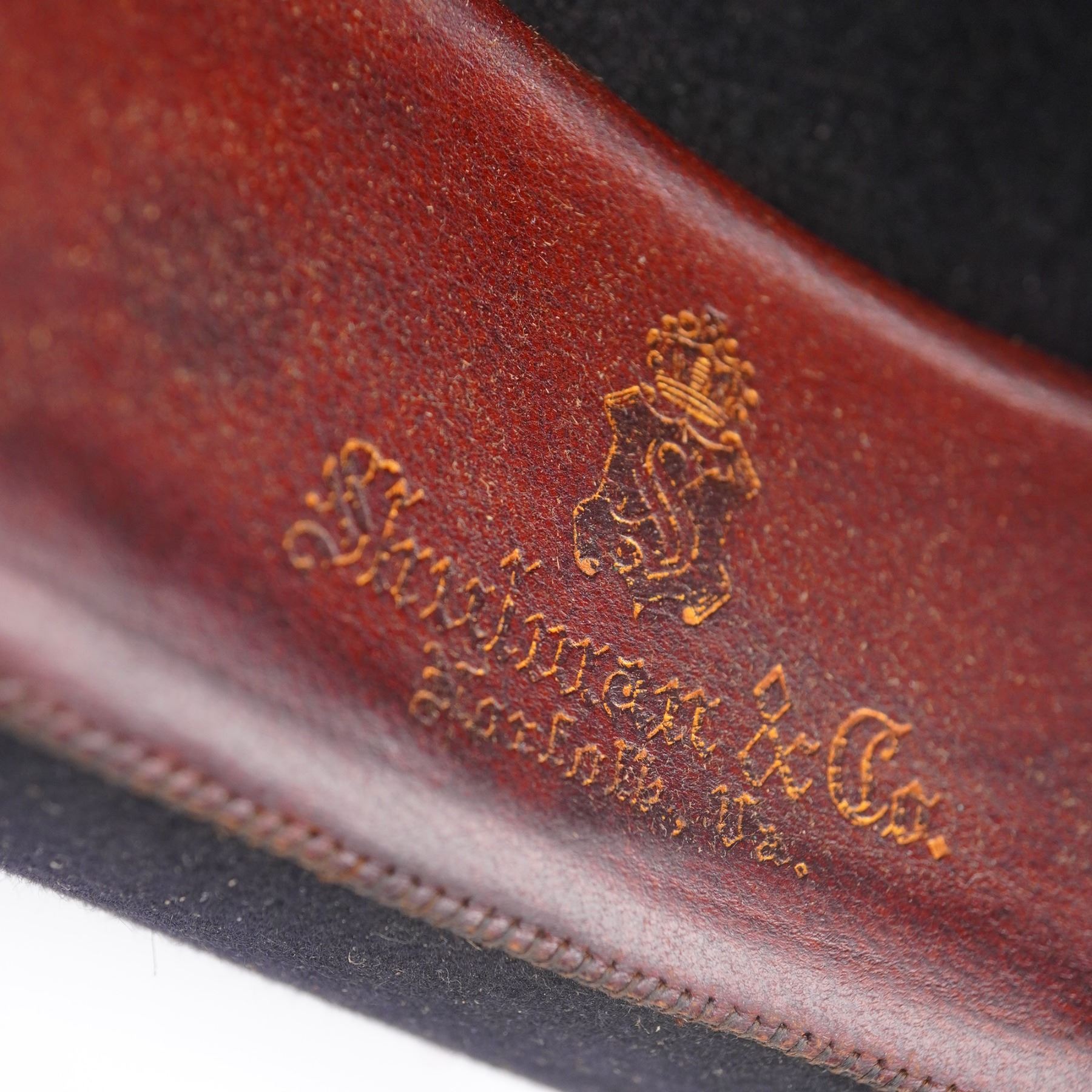 A classic vintage men's black bowler hat made by Knox of New York and retailed by Smithman & Co. of Norfolk, Virginia. This traditionally styled felt hat features a round crown, upturned brim, and a black grosgrain ribbon with side bow. The interior is lined with a leather sweatband stamped with the Knox crest and marked "MNB," along with gold-embossed lettering for Smithman & Co. The hat is housed in a period Dunlap New York hat box, which shows wear and handwritten markings. A refined and regional piece of American menswear history, combining craftsmanship and collector appeal.