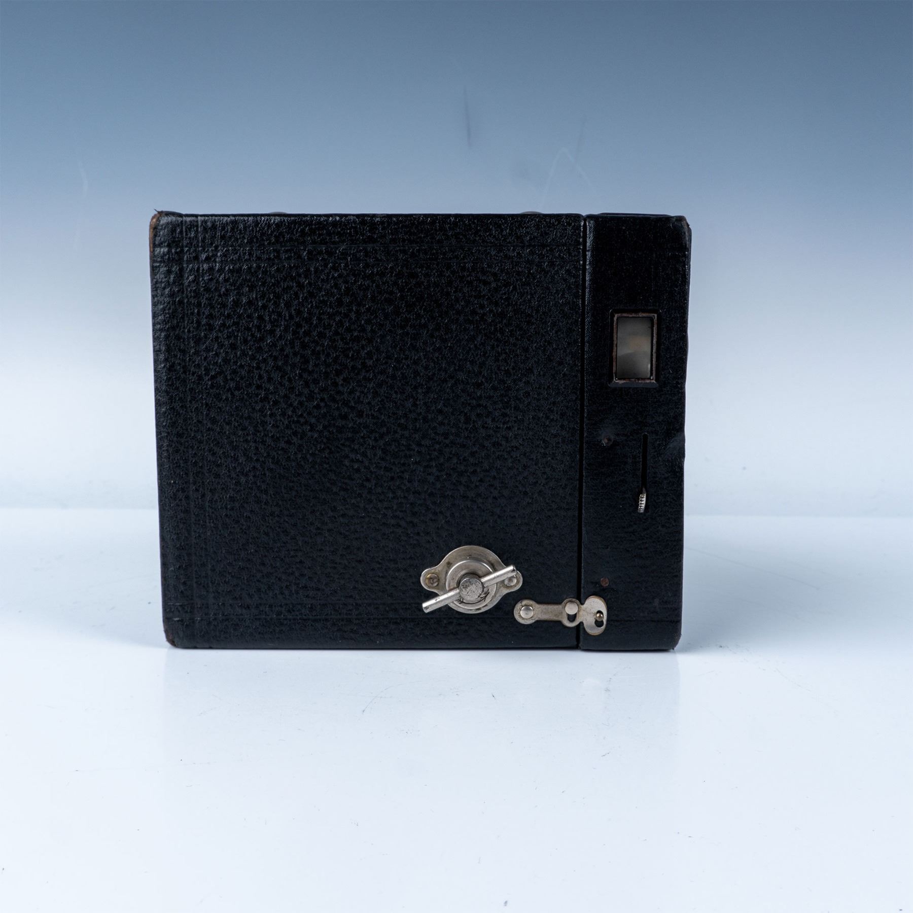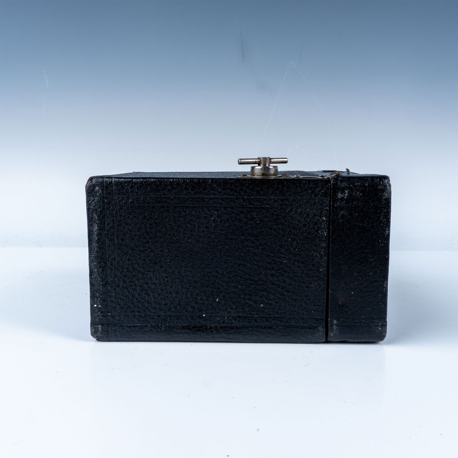 Known for its simplicity and durability, this camera made photography accessible to the general public. Its timeless design and functionality make it a great collectible or display piece. Sturdy metal body with a textured black leatherette covering.
